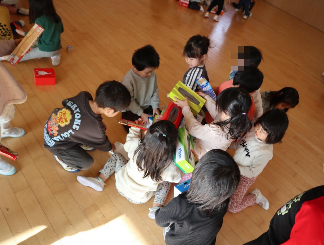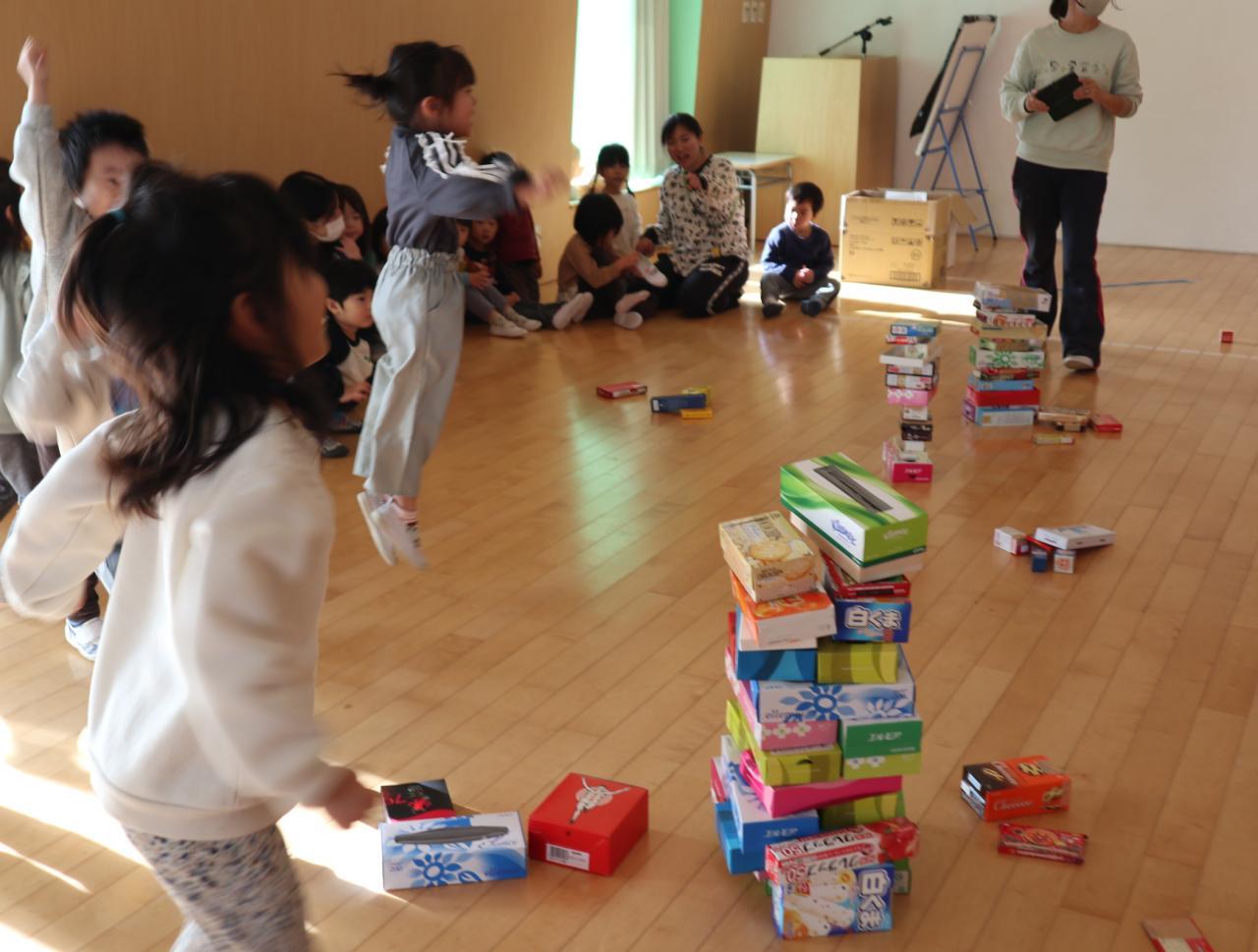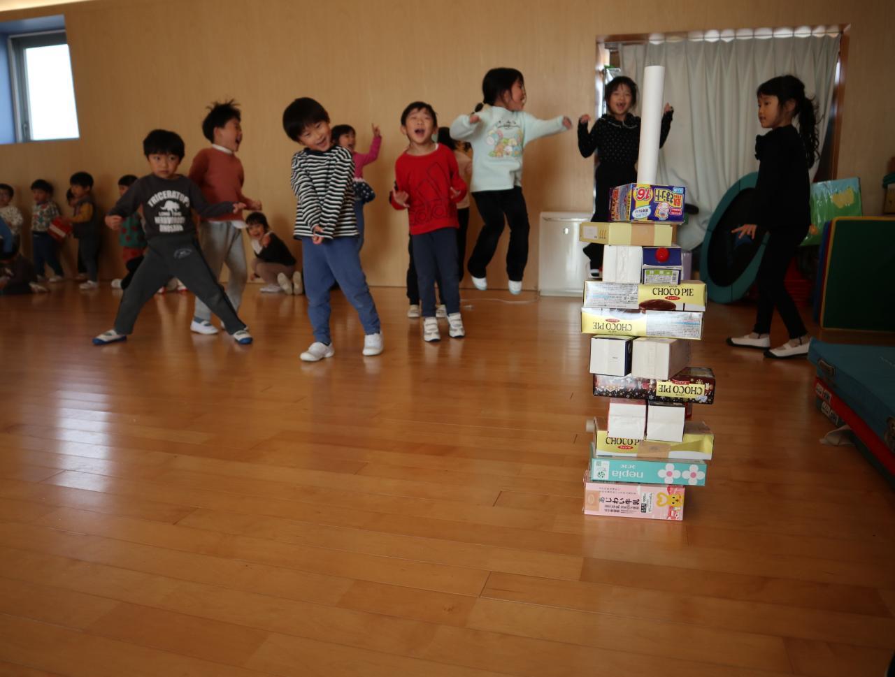 うさぎぐみさんからはクラス対抗箱積みゲームに参加しました🤩