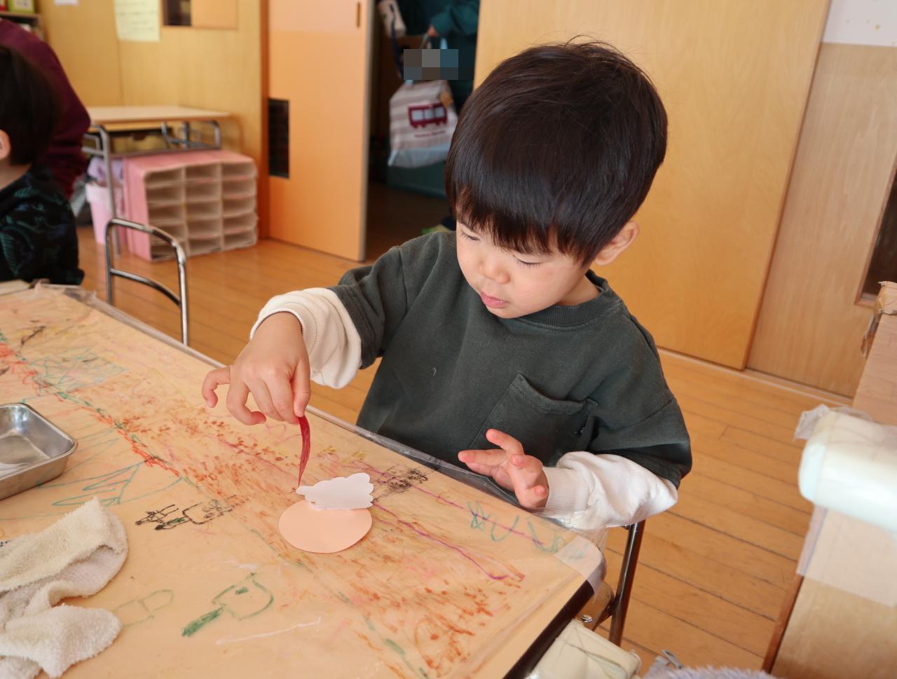 帽子とひげを貼り付け、クレヨンで顔を描きました!