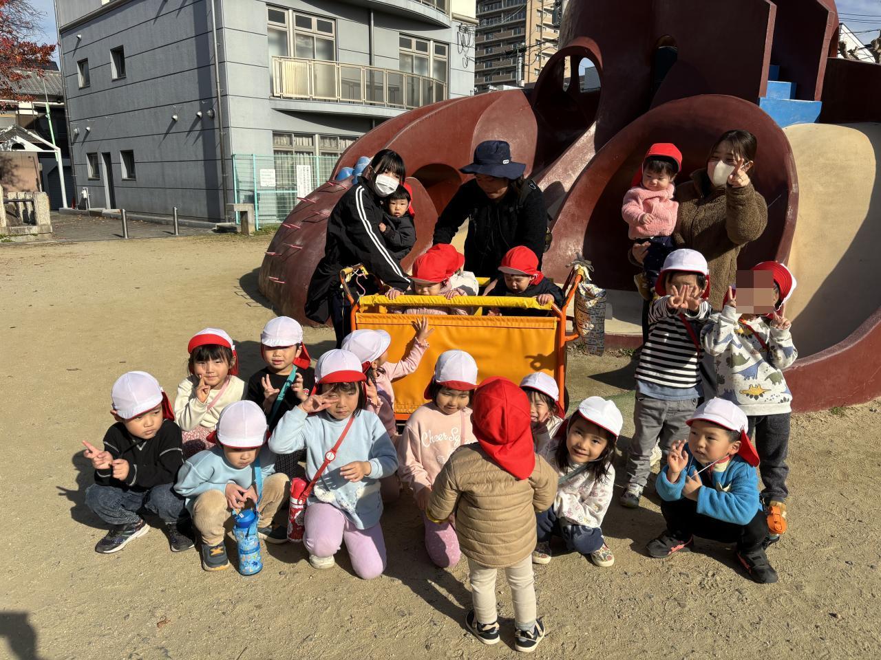 ひよこぐみさんと一緒に麻田公園に行って玉入れや縄跳び、落ち葉拾いをして遊びました✨🍂