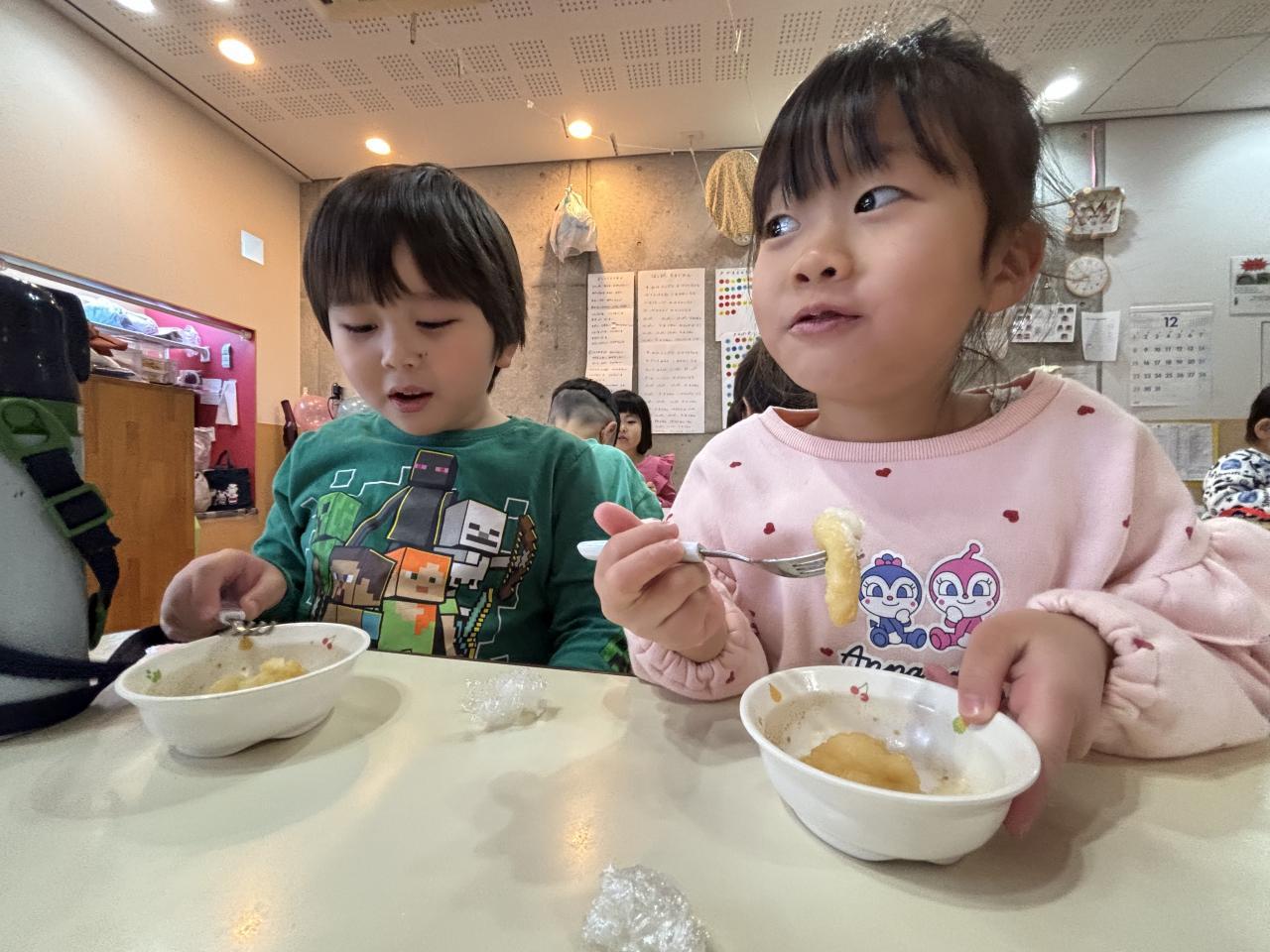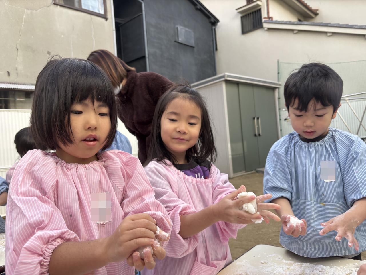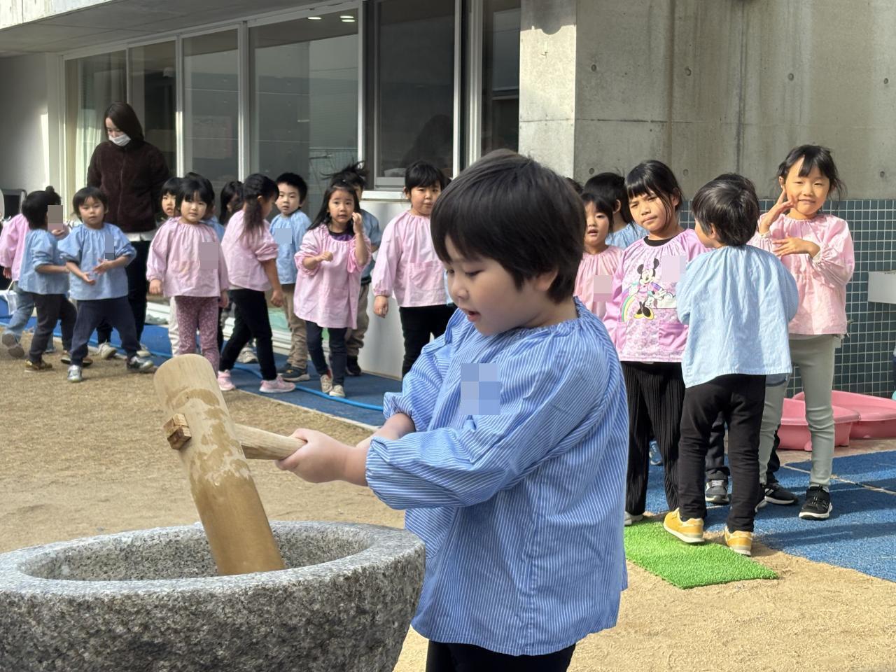 元気いっぱいに数を数えながら餅つきをして最後にみんなでお餅を食べました😋