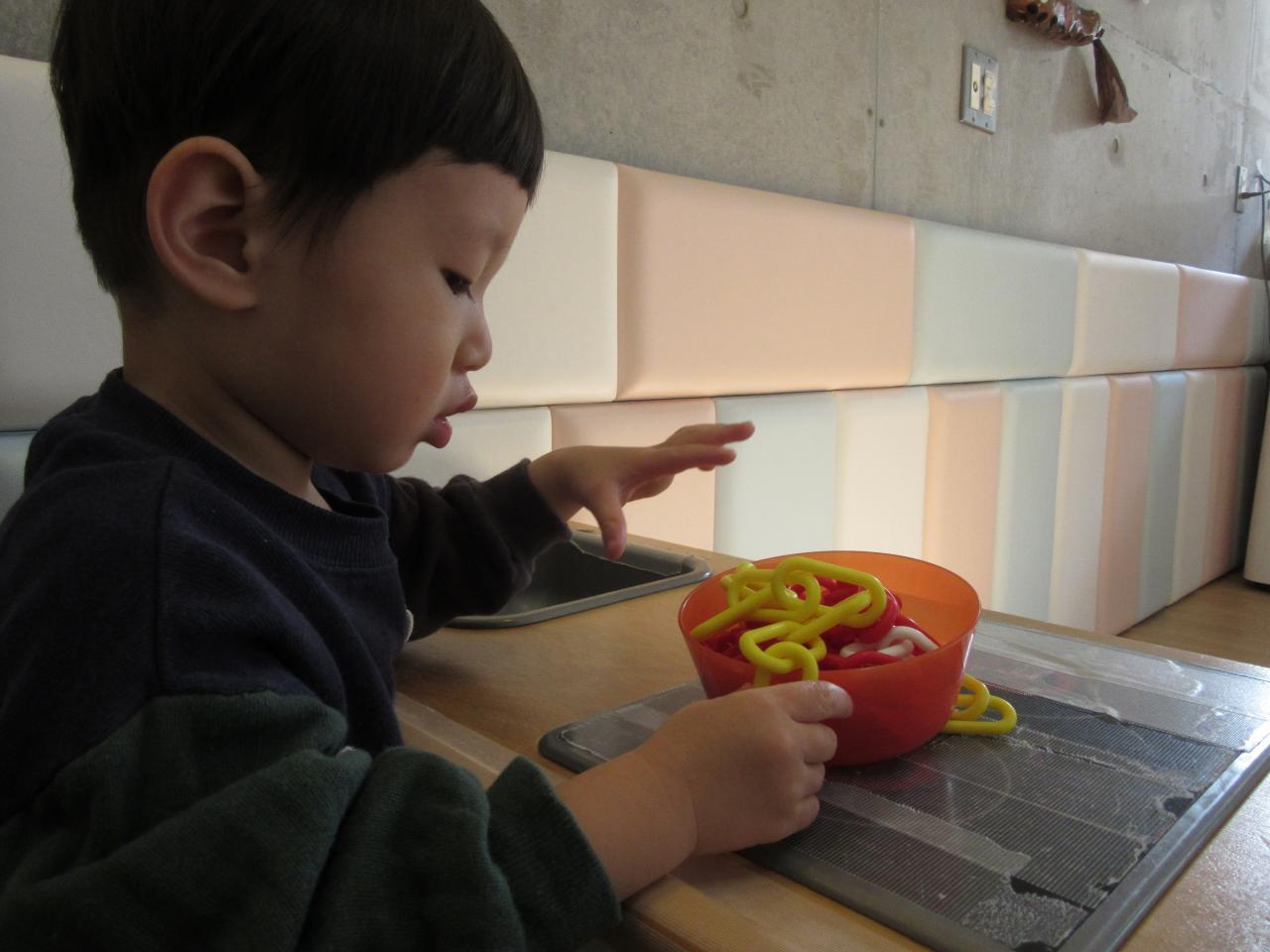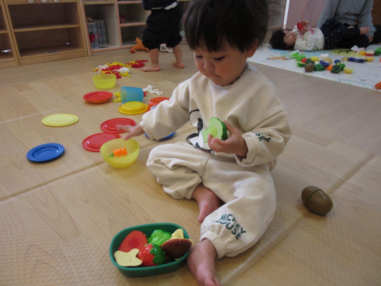 おままごと遊びでは、包丁を使って具材を切って料理を作ってくれました😊
