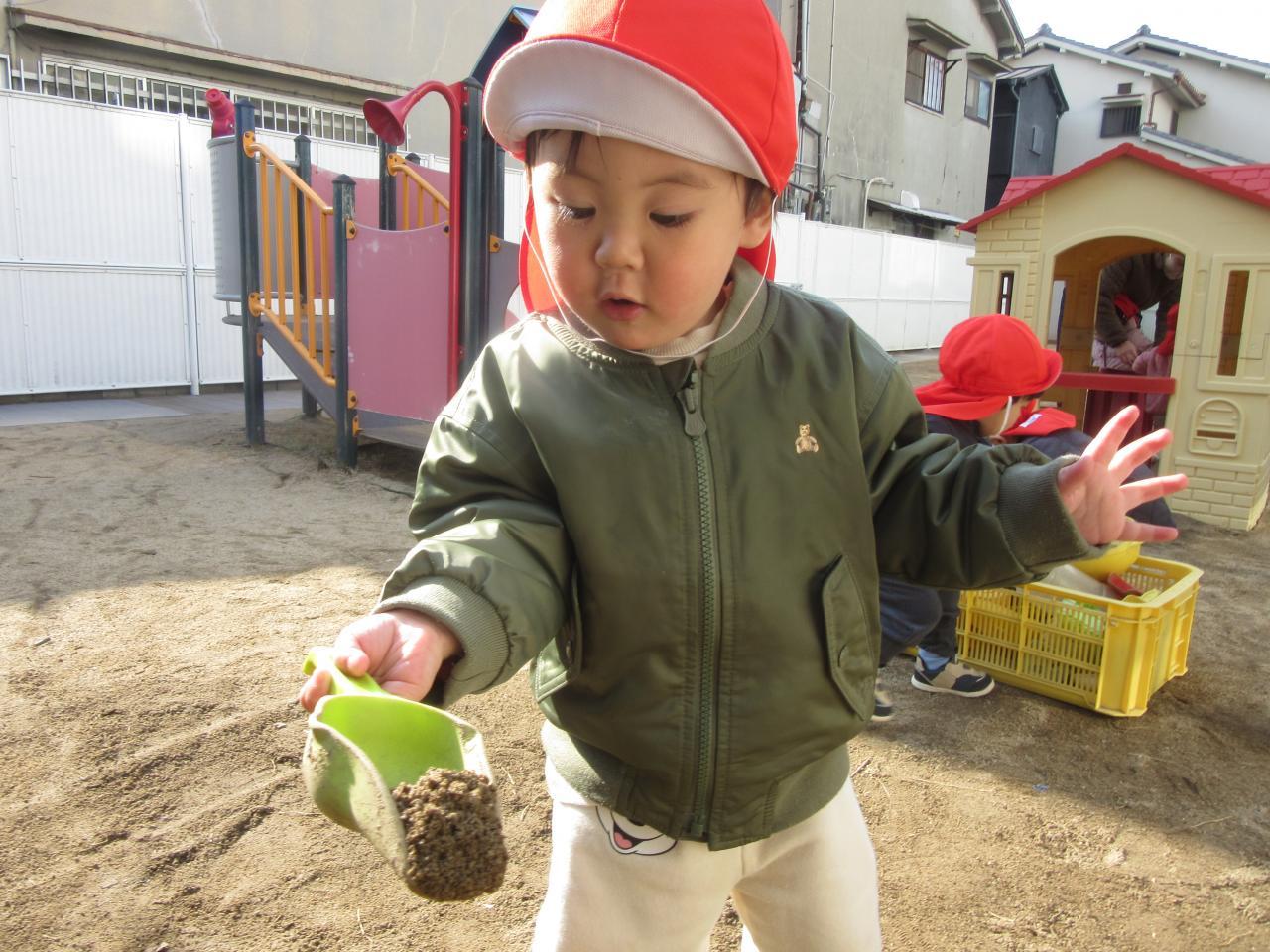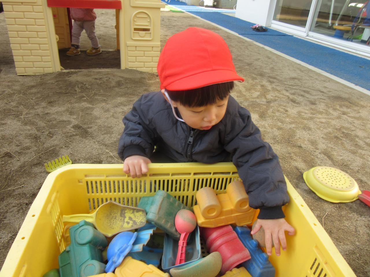 砂場あそびでは子どもたちが自分で使いたい玩具を選んで楽しく遊びました😆