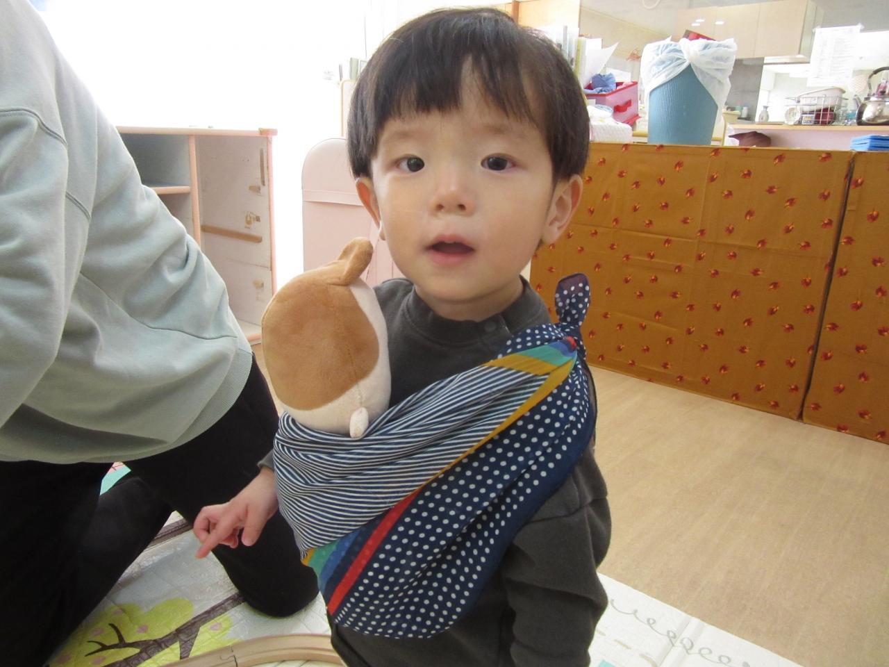 抱っこ紐を作ると人形を中に入れて!!とたくさんアピールしてくれました✨