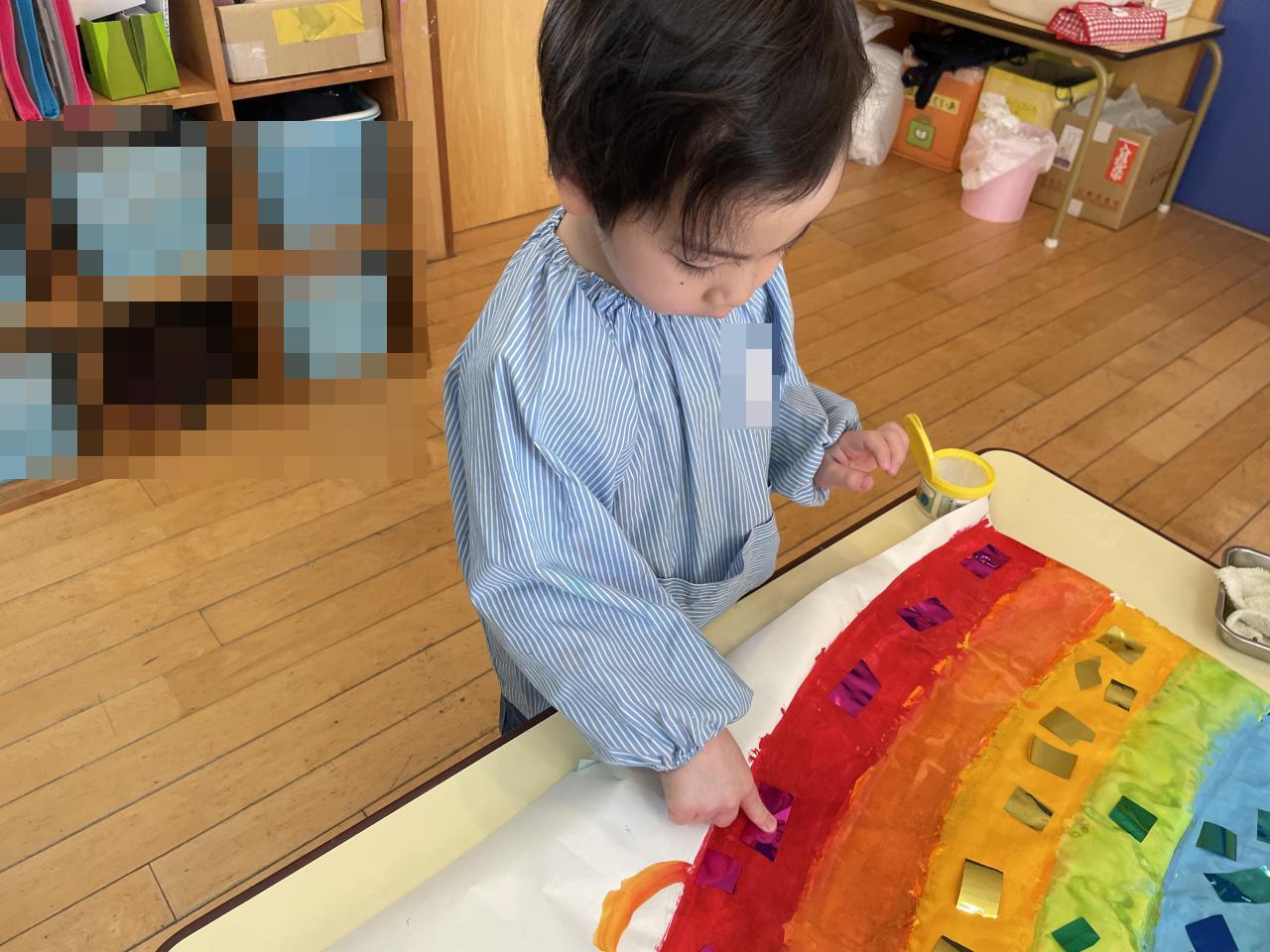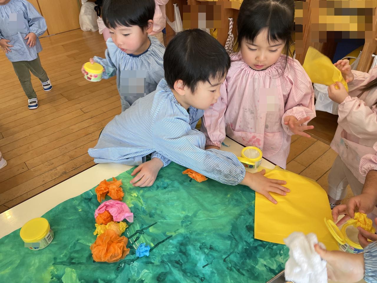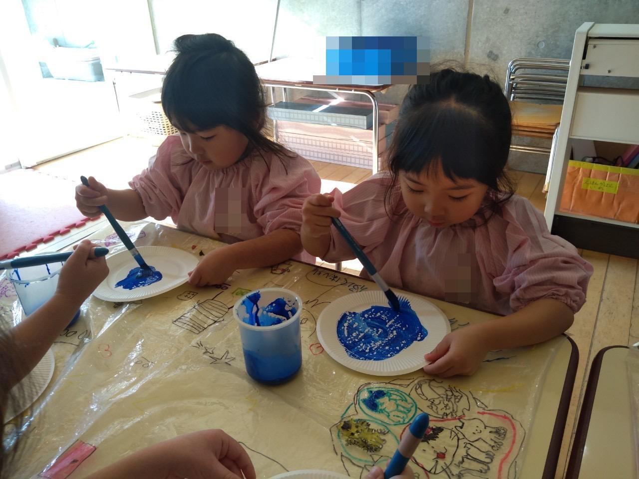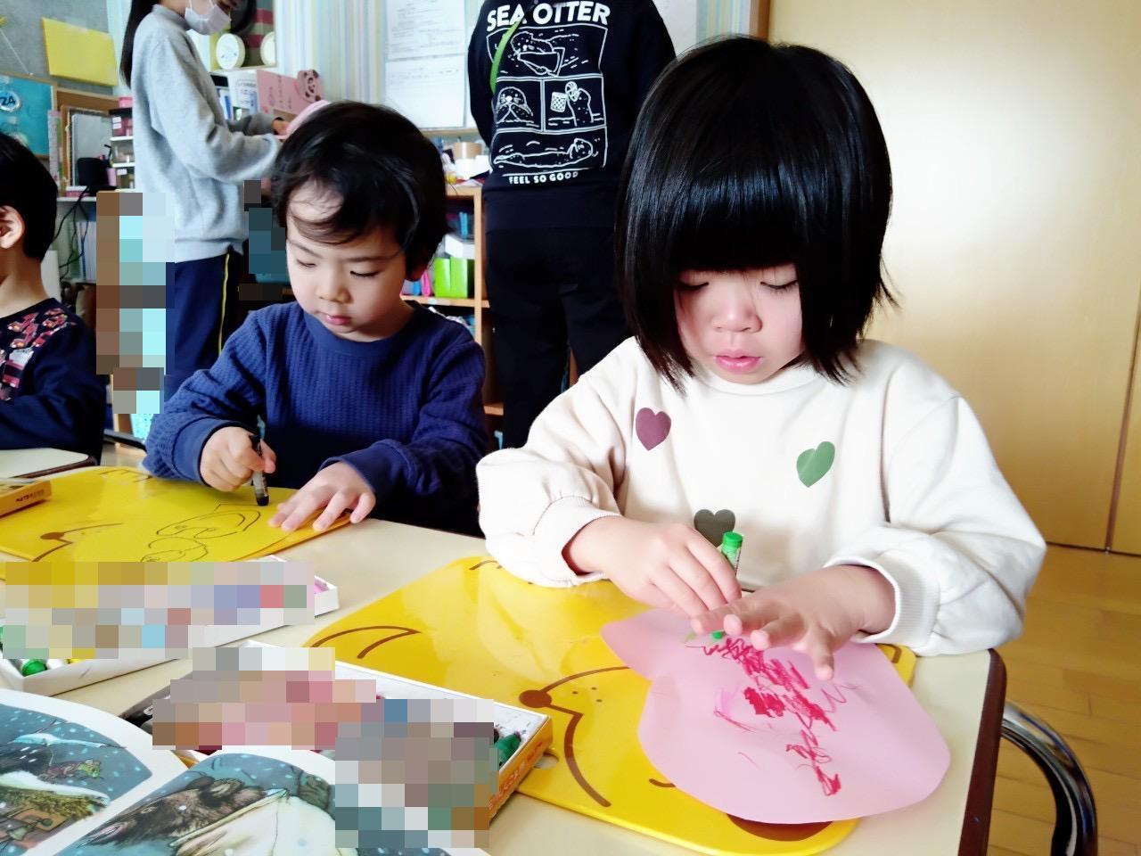 絵画あそびでは絵本の“てぶくろ”を題材にして描きました🧤