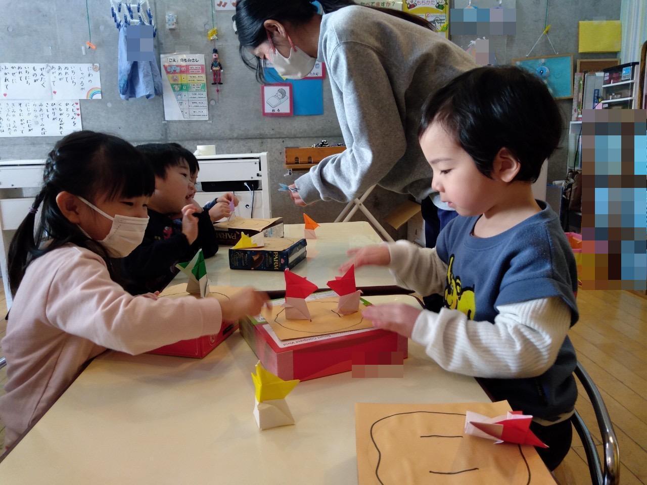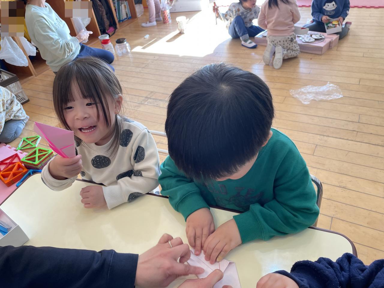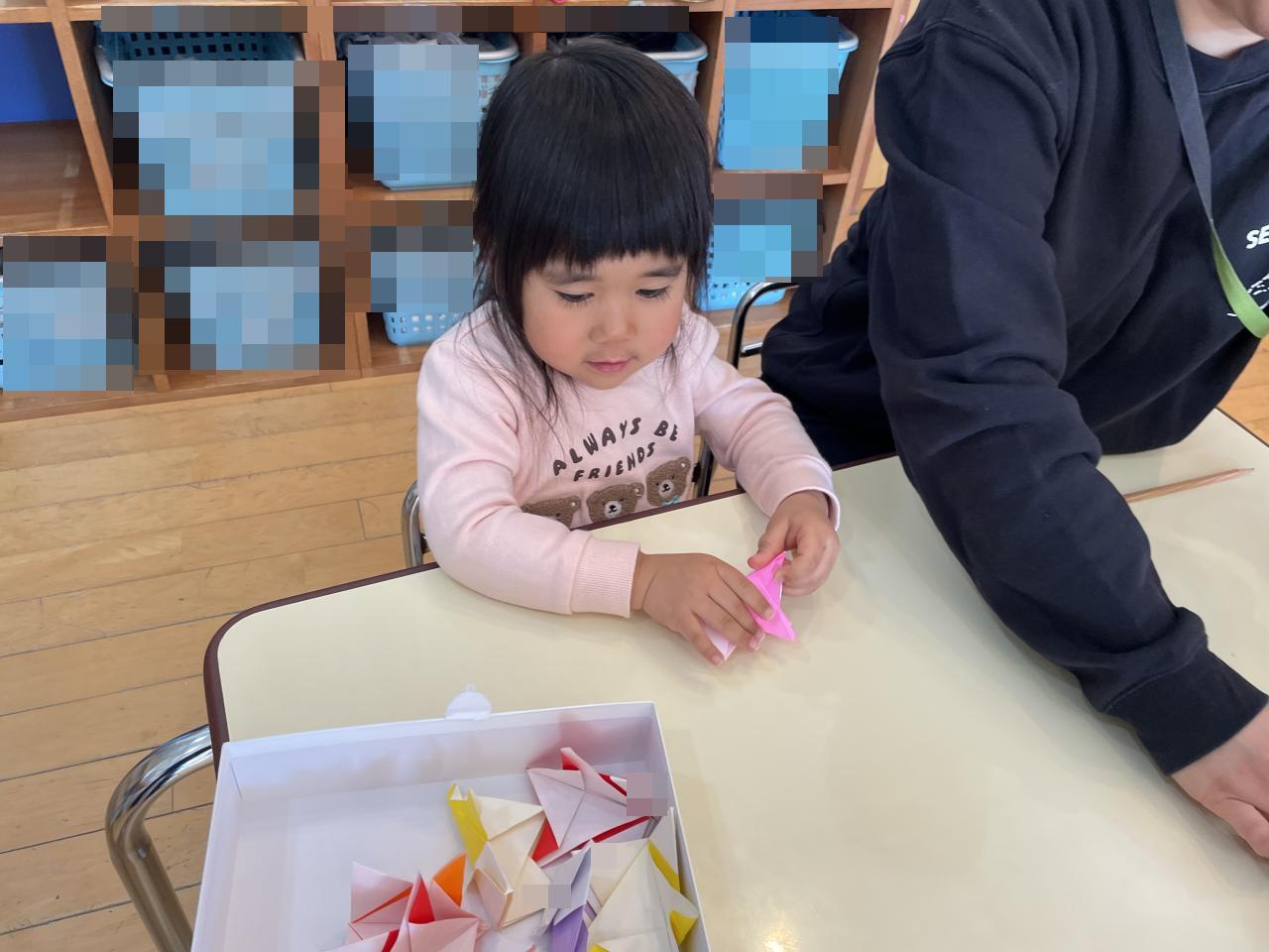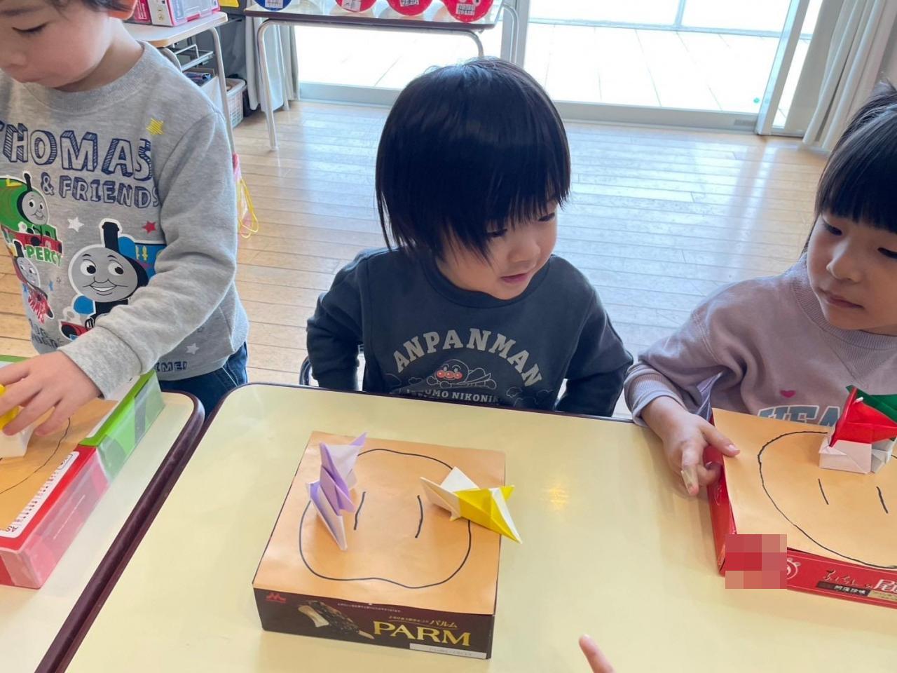 折り紙で相撲さんを折っていきましたが少し難しかったようで苦戦している姿もありました。