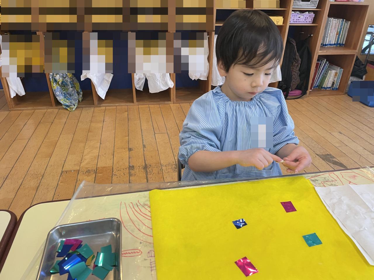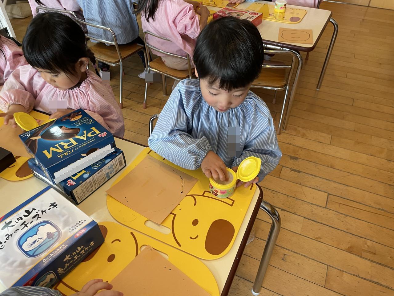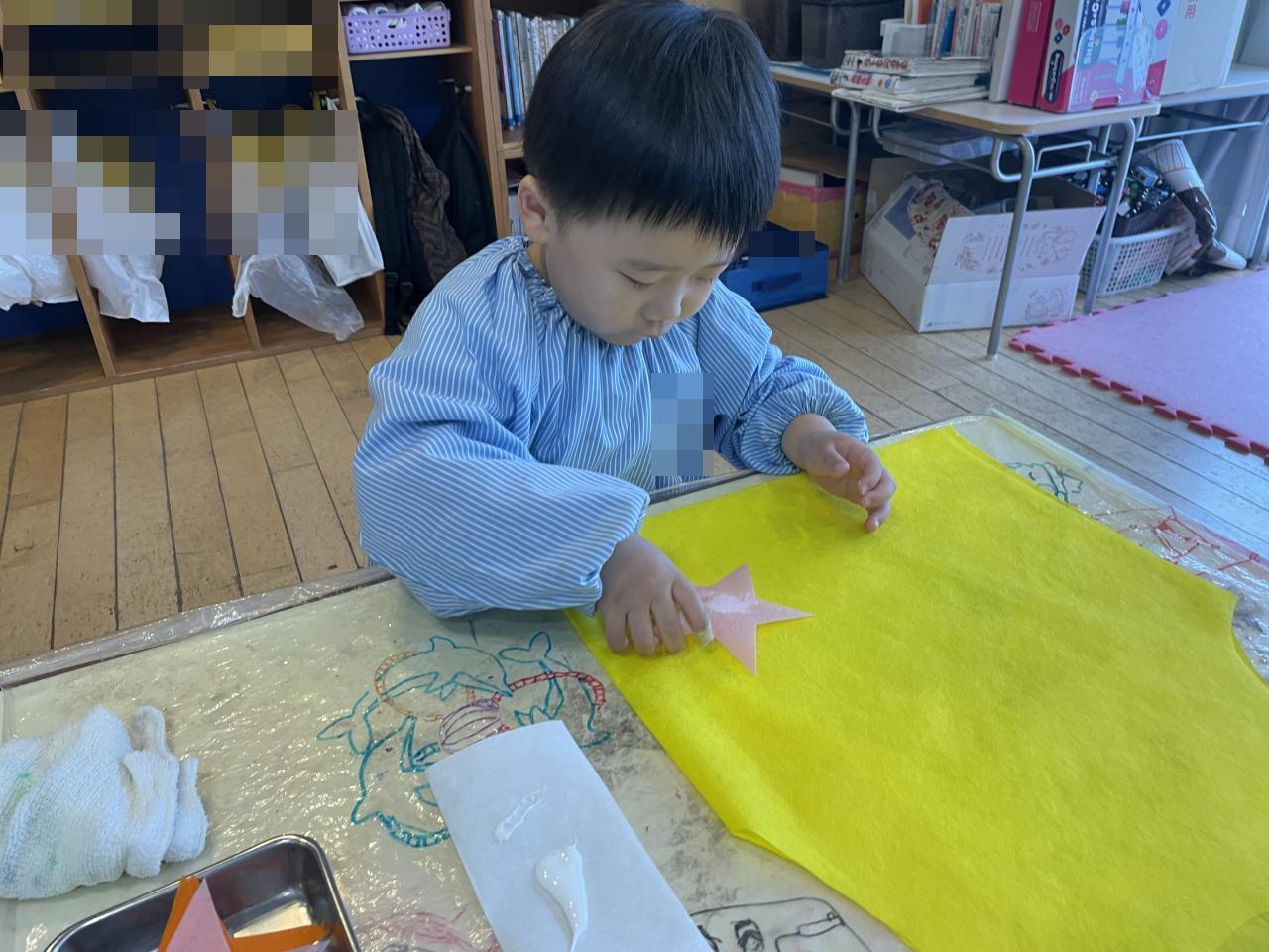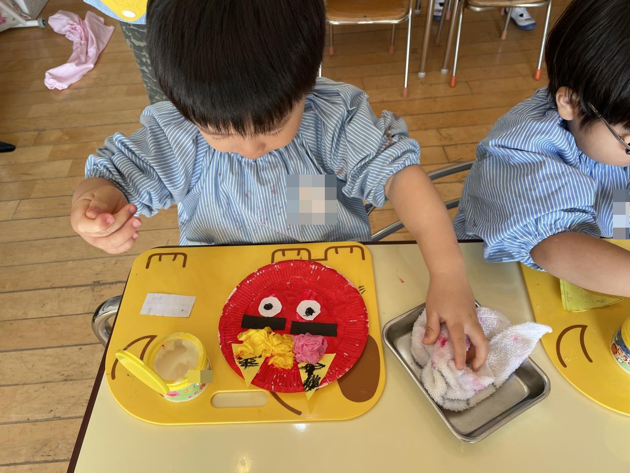 完成した鬼のお面を見て「こわーい」と言いながらも、にこにこしてかぶるのを楽しみにしている様子でした🤭