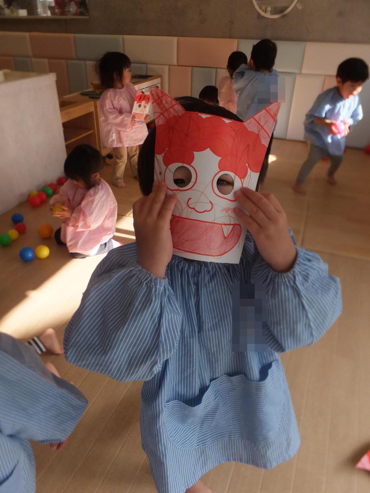 鬼になりきったり、鬼にボールを投げたり、節分に向けて遊びました👹