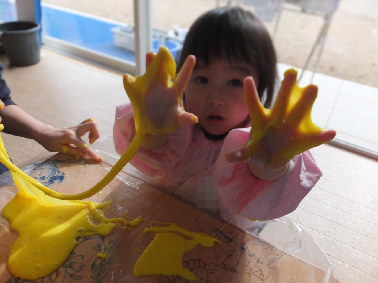 びよーんと伸びるスライムに興味津々の子どもたちでした😄