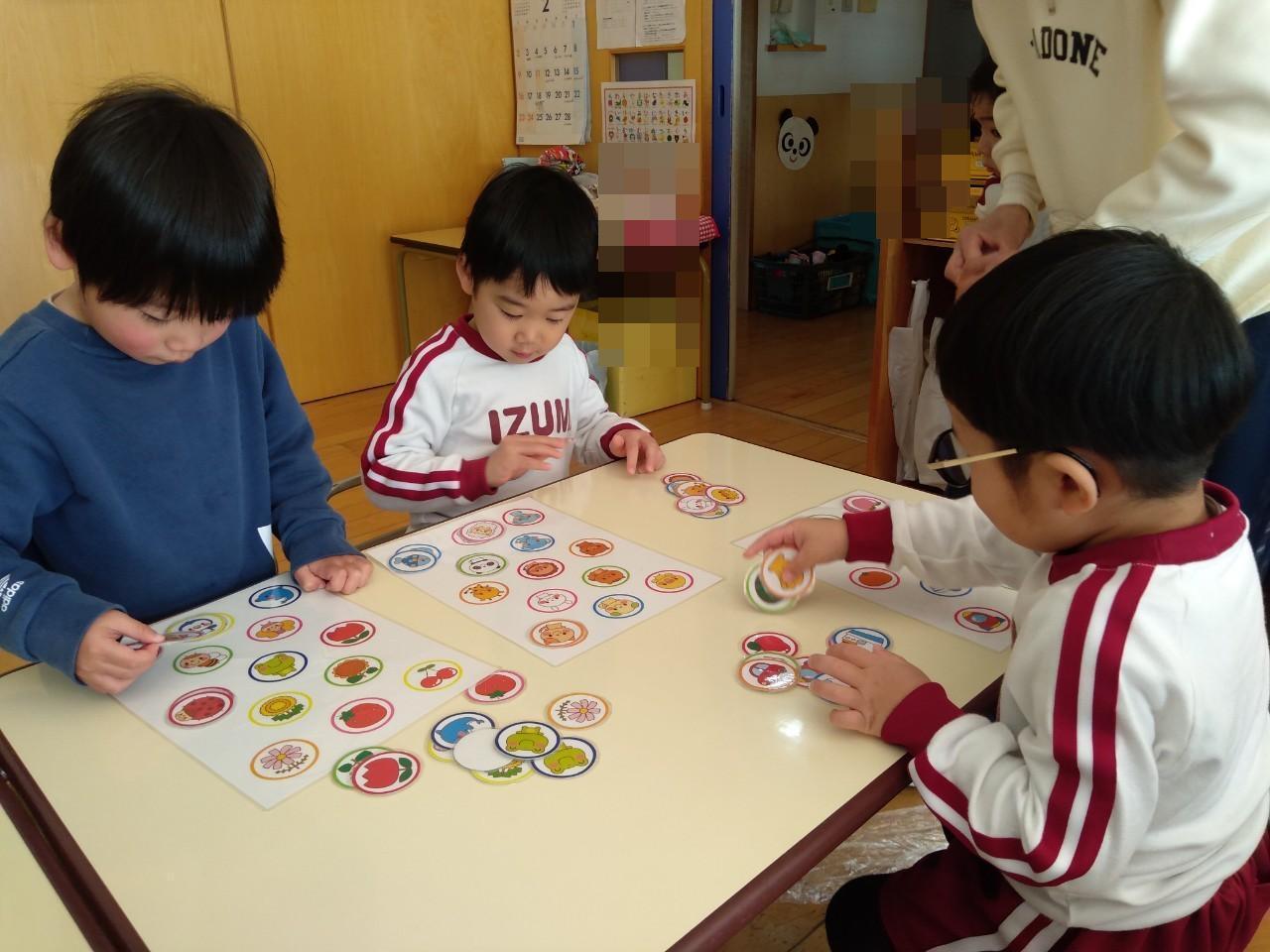 磁石パズルや絵合わせゲーム、きのこパズルなど、机上あそびを楽しみました♪
