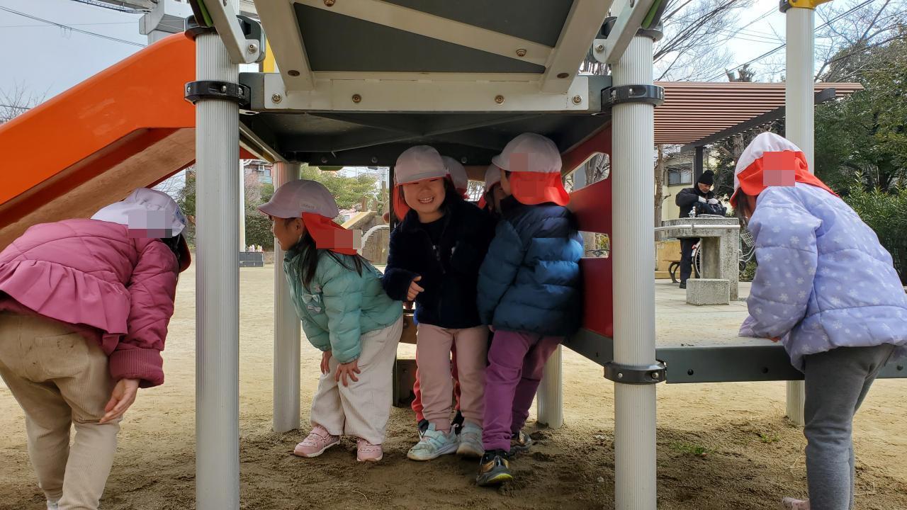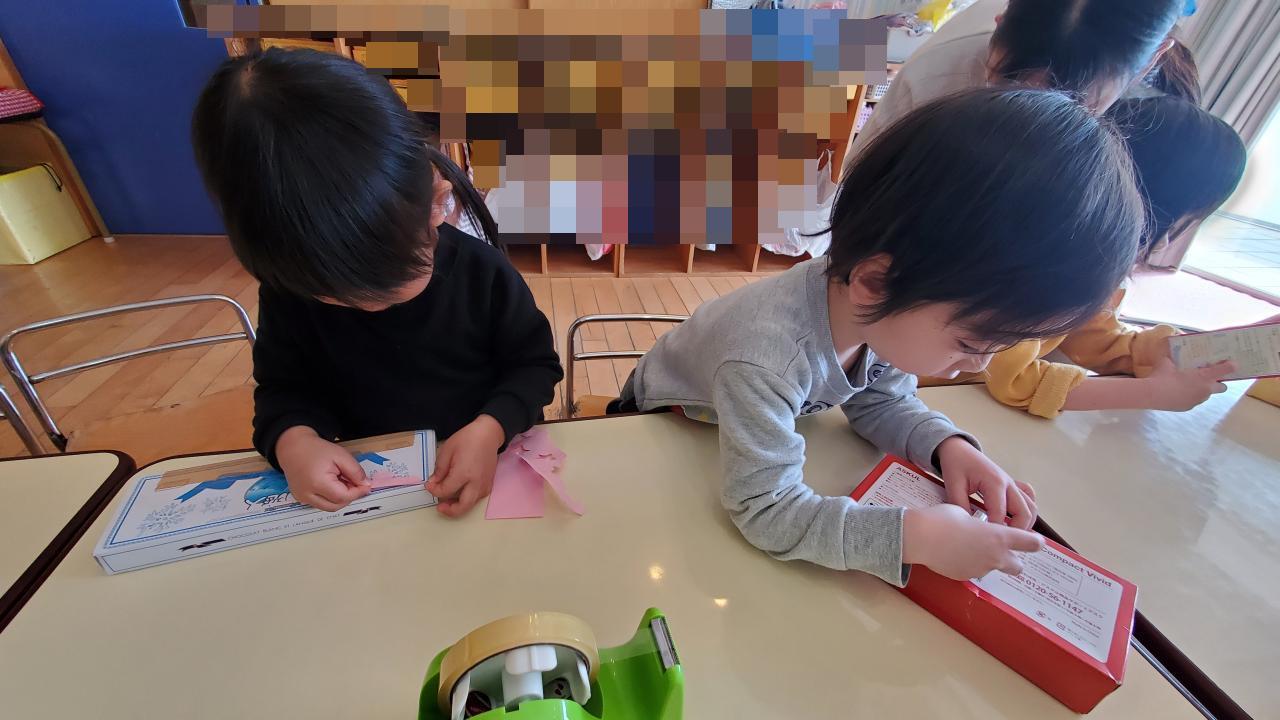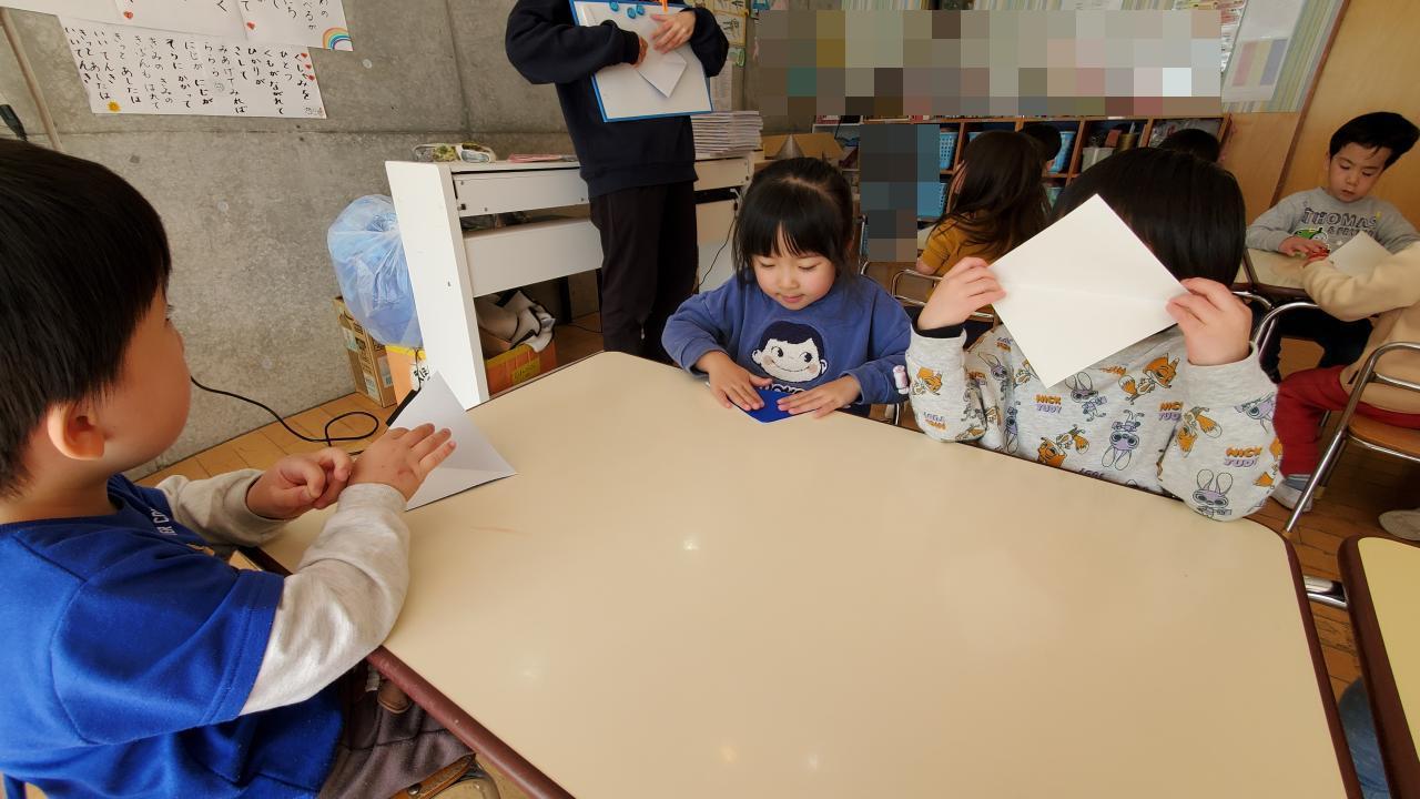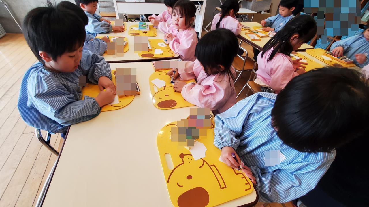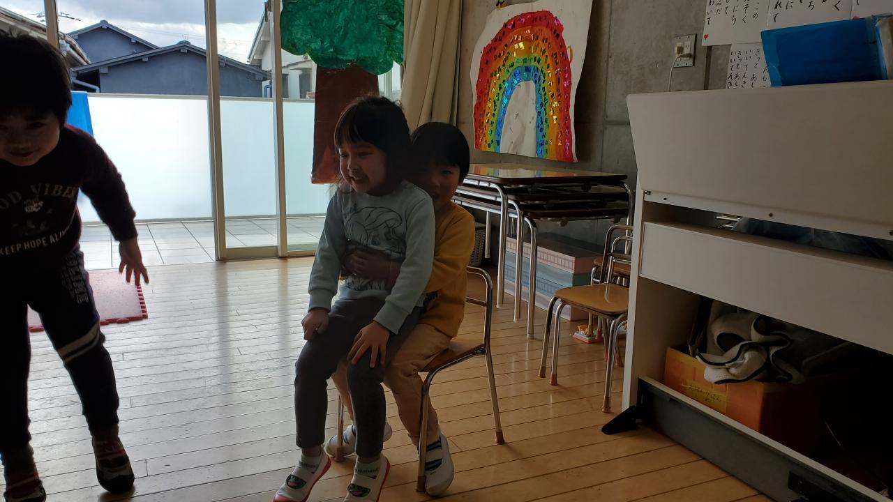 椅子が減っていき、座れない時は、お友だちの膝の上に座るのですが、座れなかったお友だちに「ここあいてるよ~」「おいで~」と、声を掛けてあげていましたよ😊