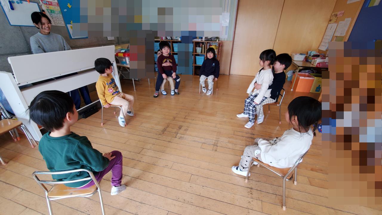 音楽に合せて歩いたり、音楽が止まったらすぐに椅子に座ったりとピアノの音に合わせて楽しみました🎵