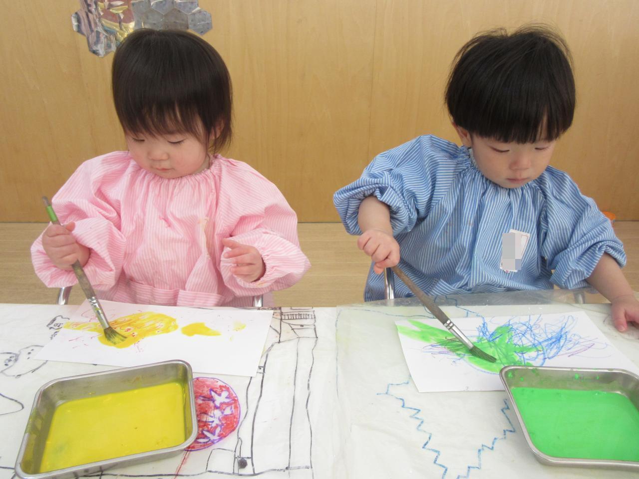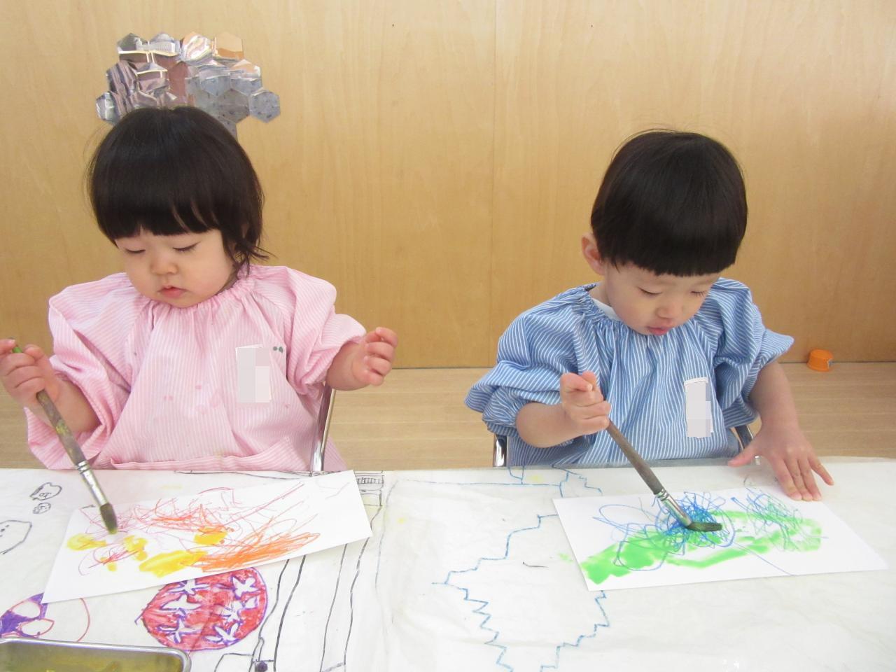 その上から絵の具を塗り、はじき絵を楽しみました🖌