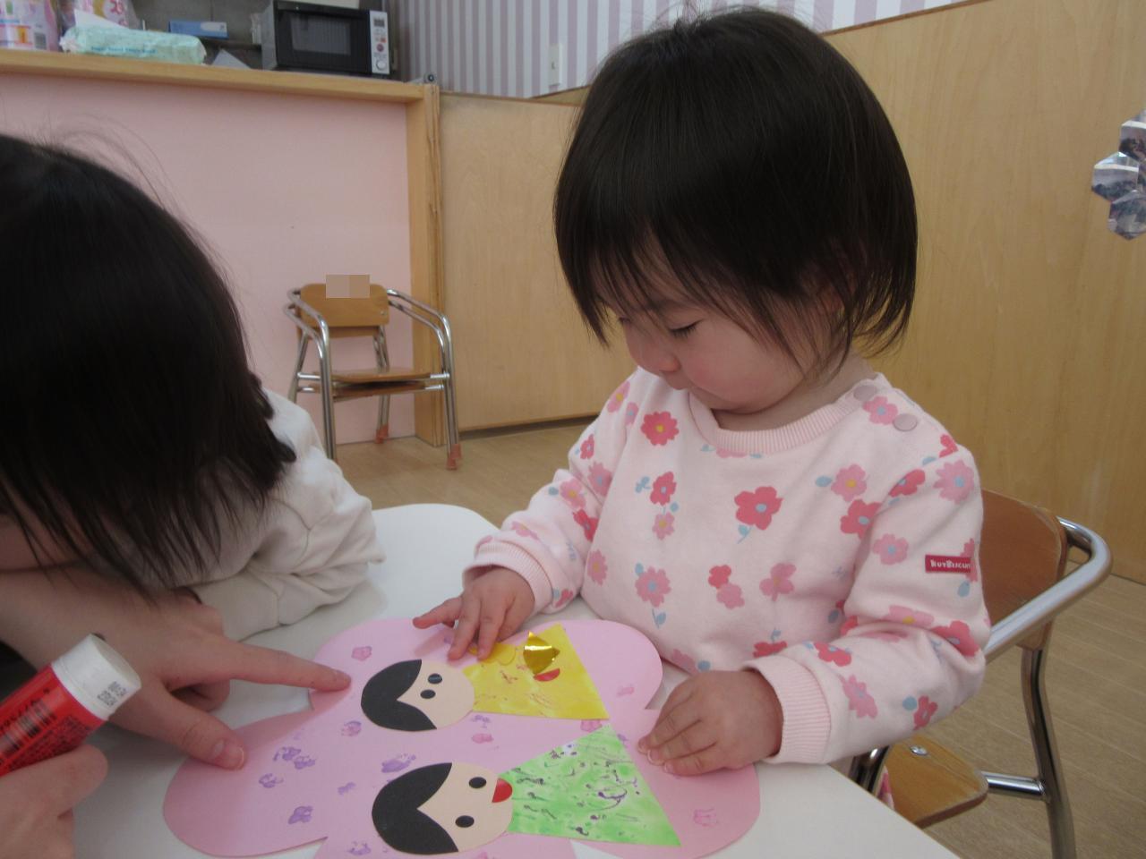 お雛様とお内裏様の顔のパーツや、装飾も自分で貼りました✨