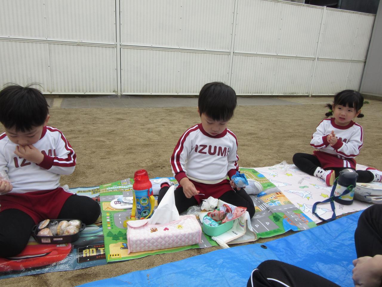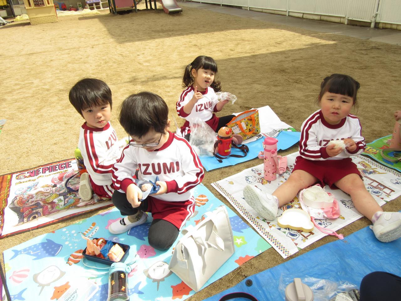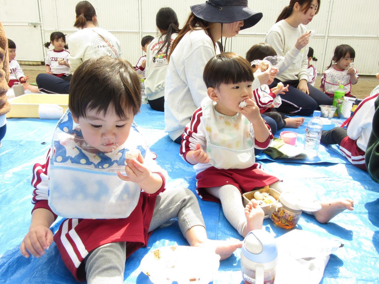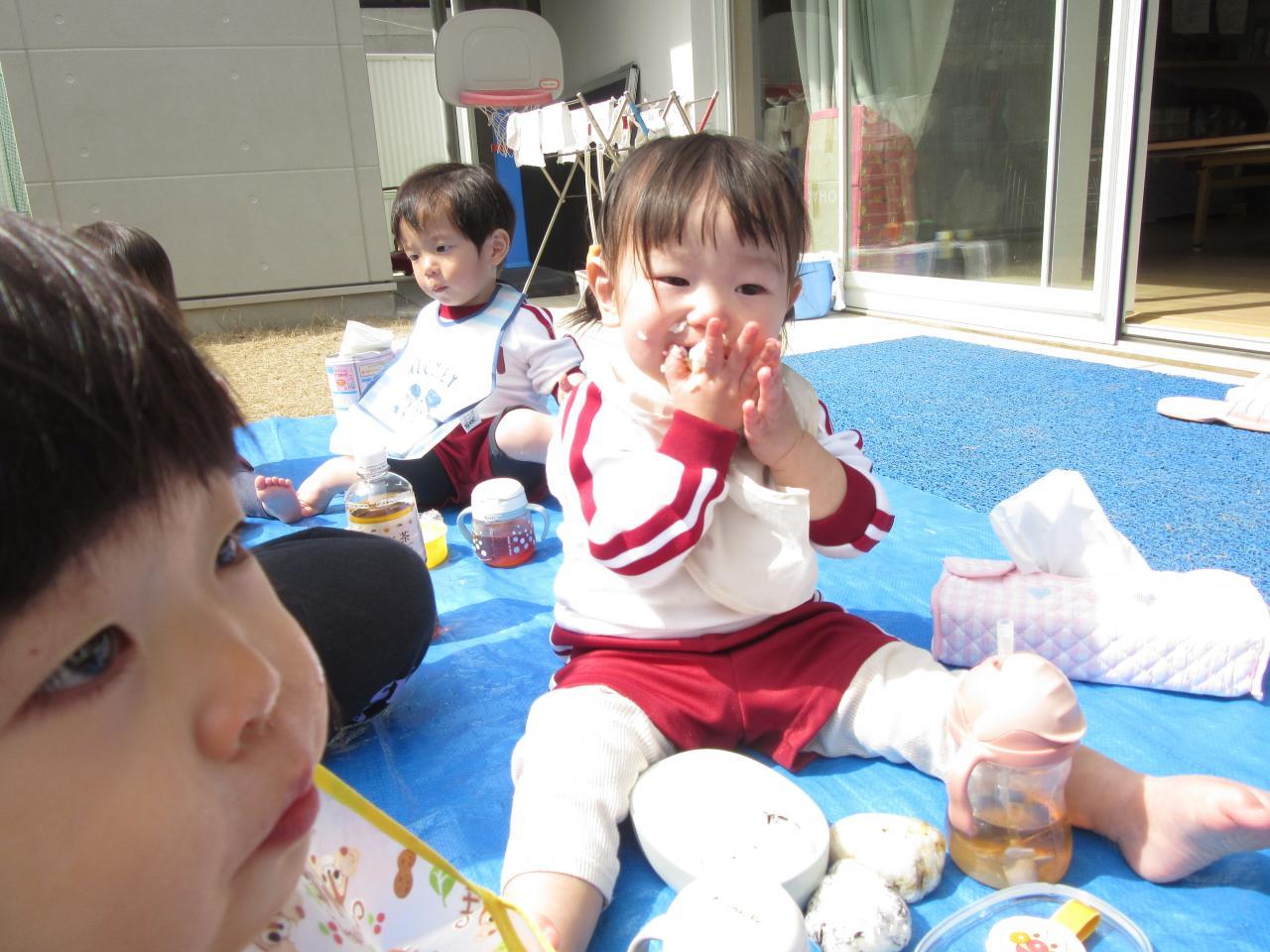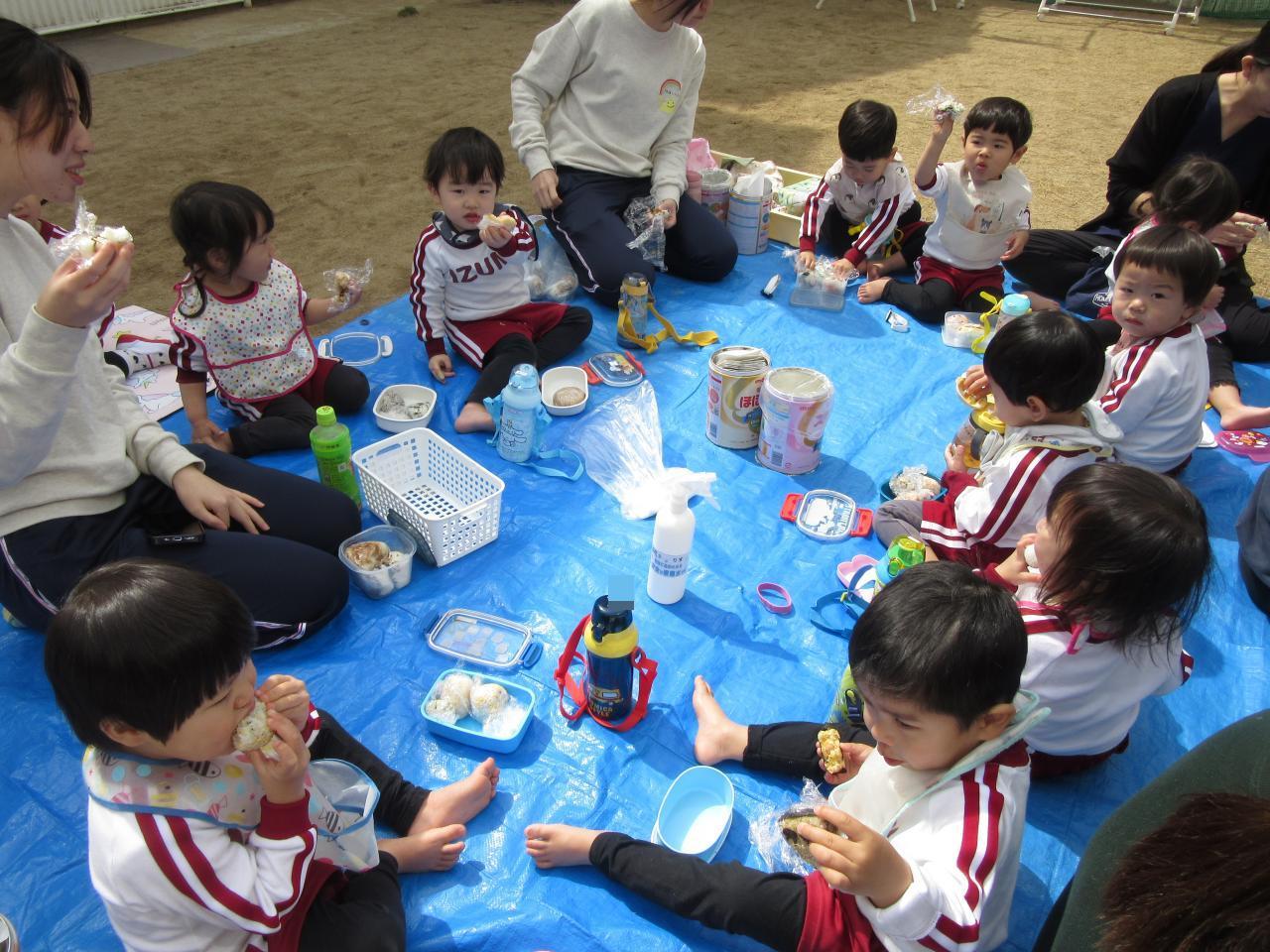 園に到着し、みんなお待ちかねのおにぎり弁当の時間がやってきました😋