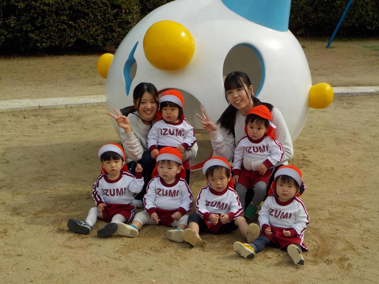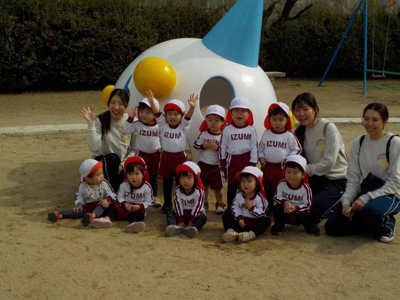 りすぐみ、うさぎぐみはお友だちと手を繋いで歩いていきました🌟