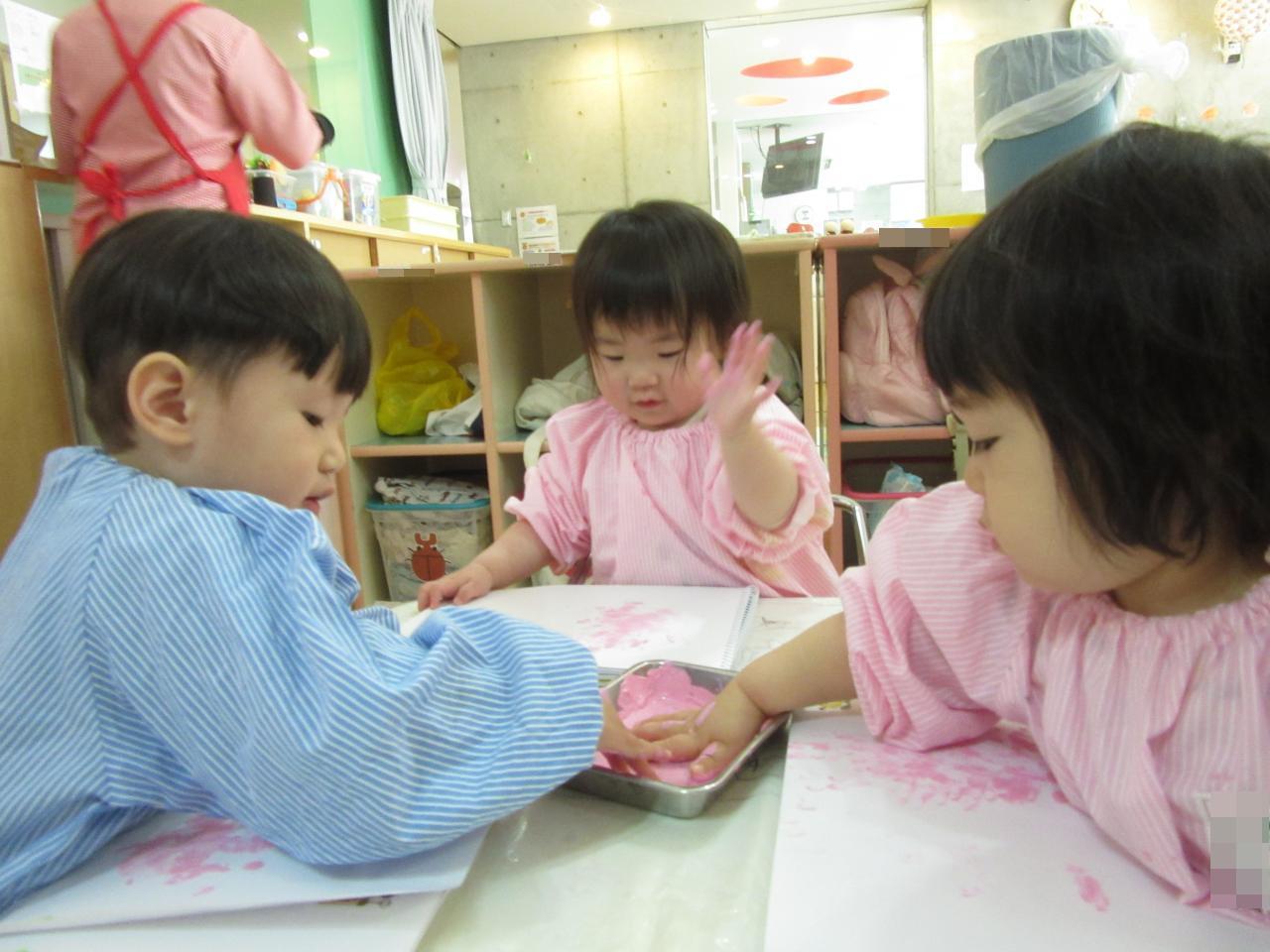 指スタンプやクレヨンを使って桜を作りました🌸