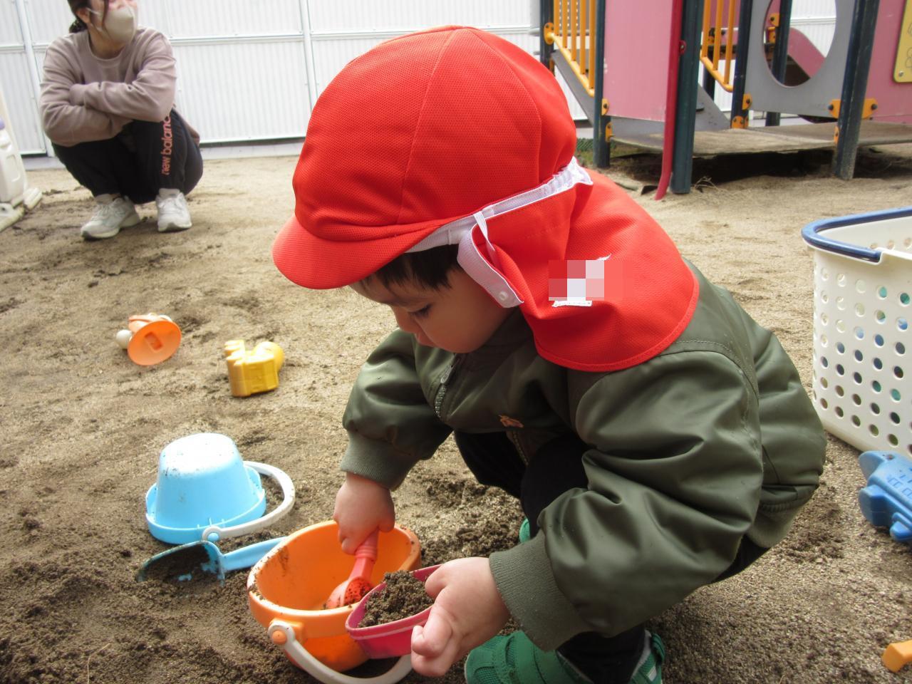 大好きな砂場や小さい家でお友だちとたくさん一緒に遊びました‼