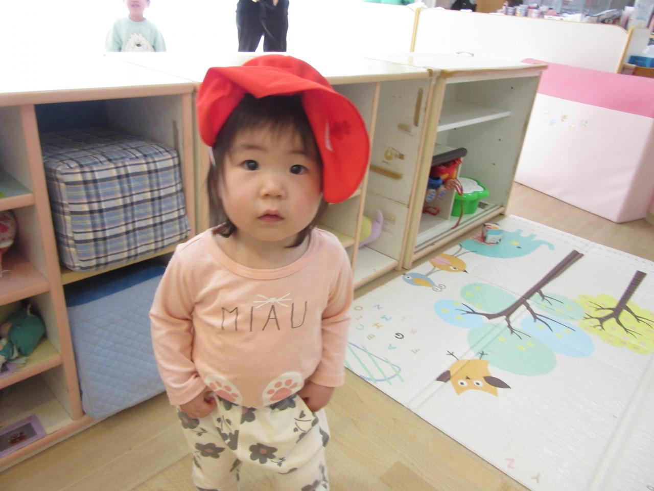 自分で帽子を被ろうとする子どもたちなんです🤣