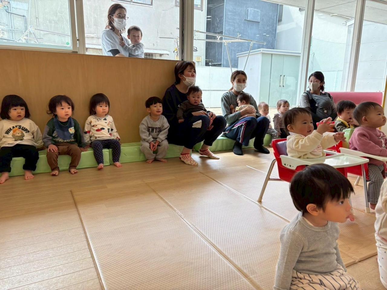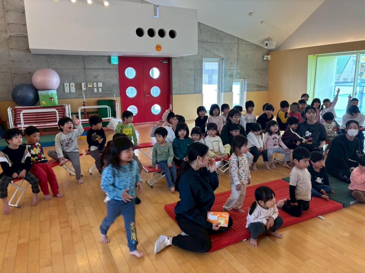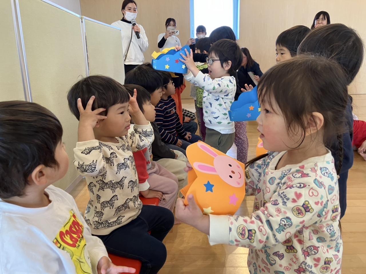うさぎぐみ・ぱんだぐみ・くまぐみ・きりんぐみはホールでお祝いしました🌟