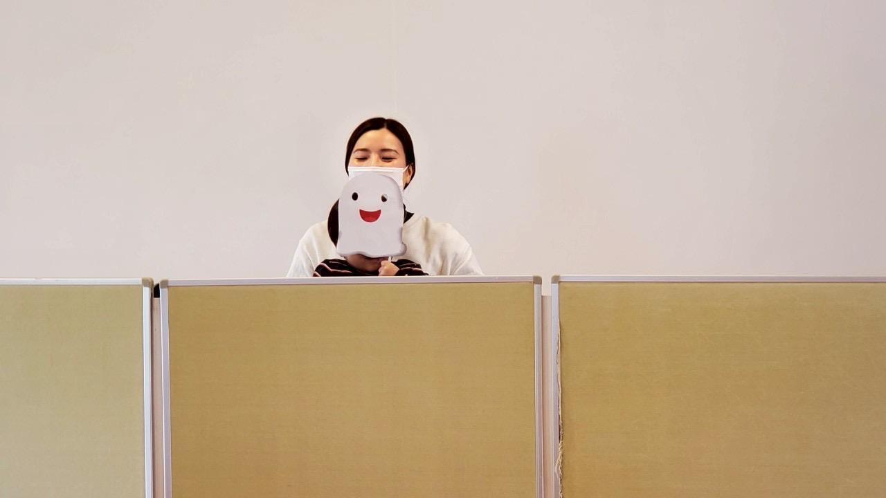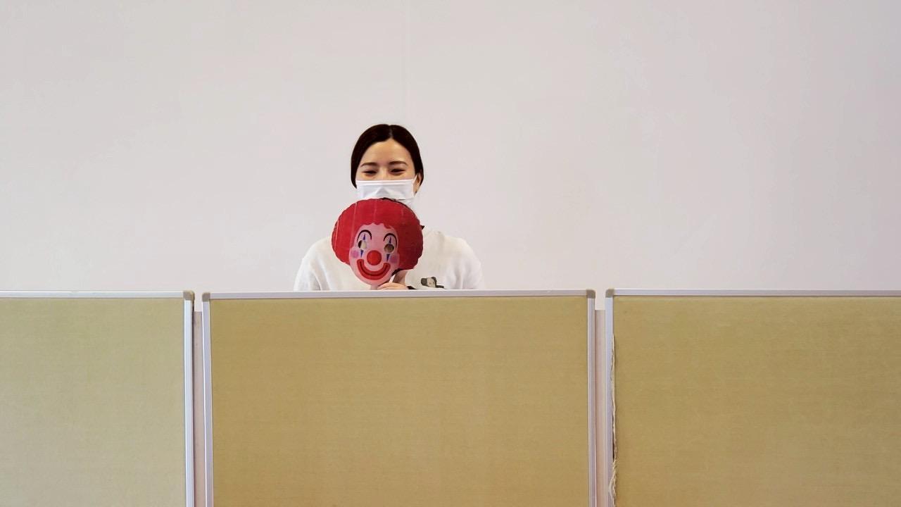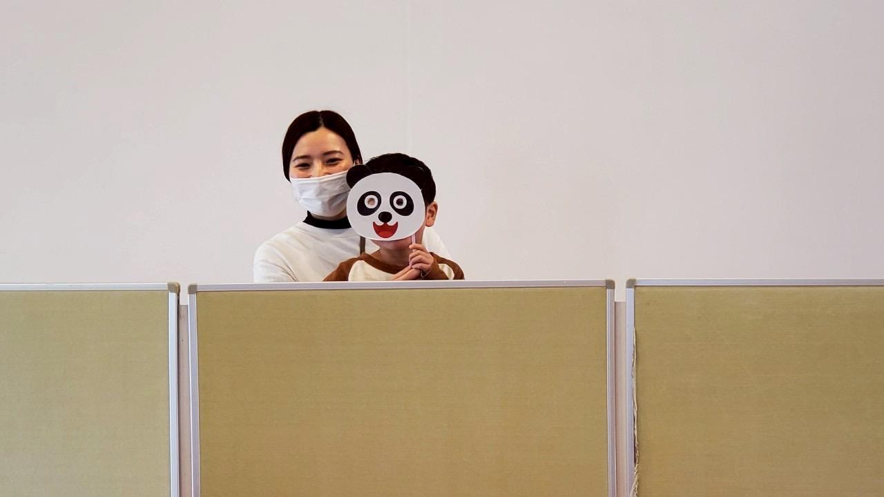パーテーションの裏に隠れて好きなお面を選んでもらいましたよ!