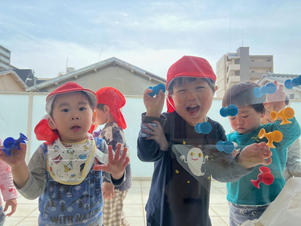 お天気のいい日はテラスに出て日光浴をしながら玩具で遊びましたよ🌞