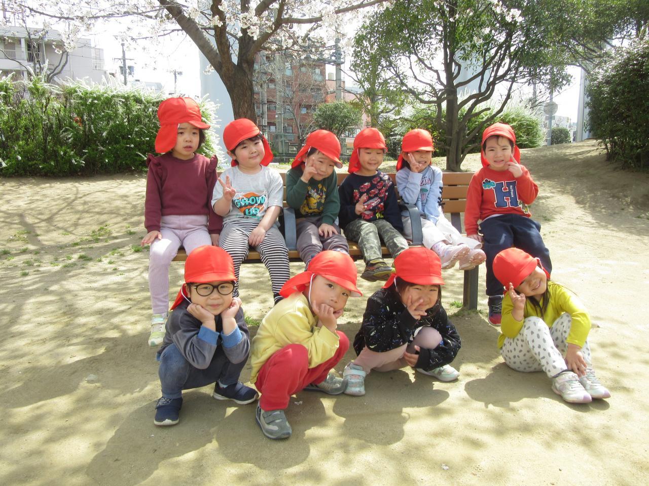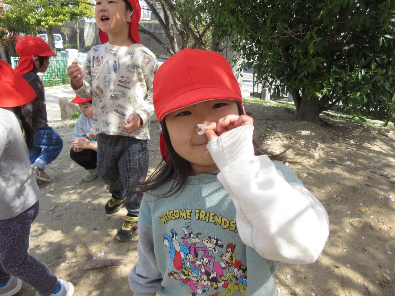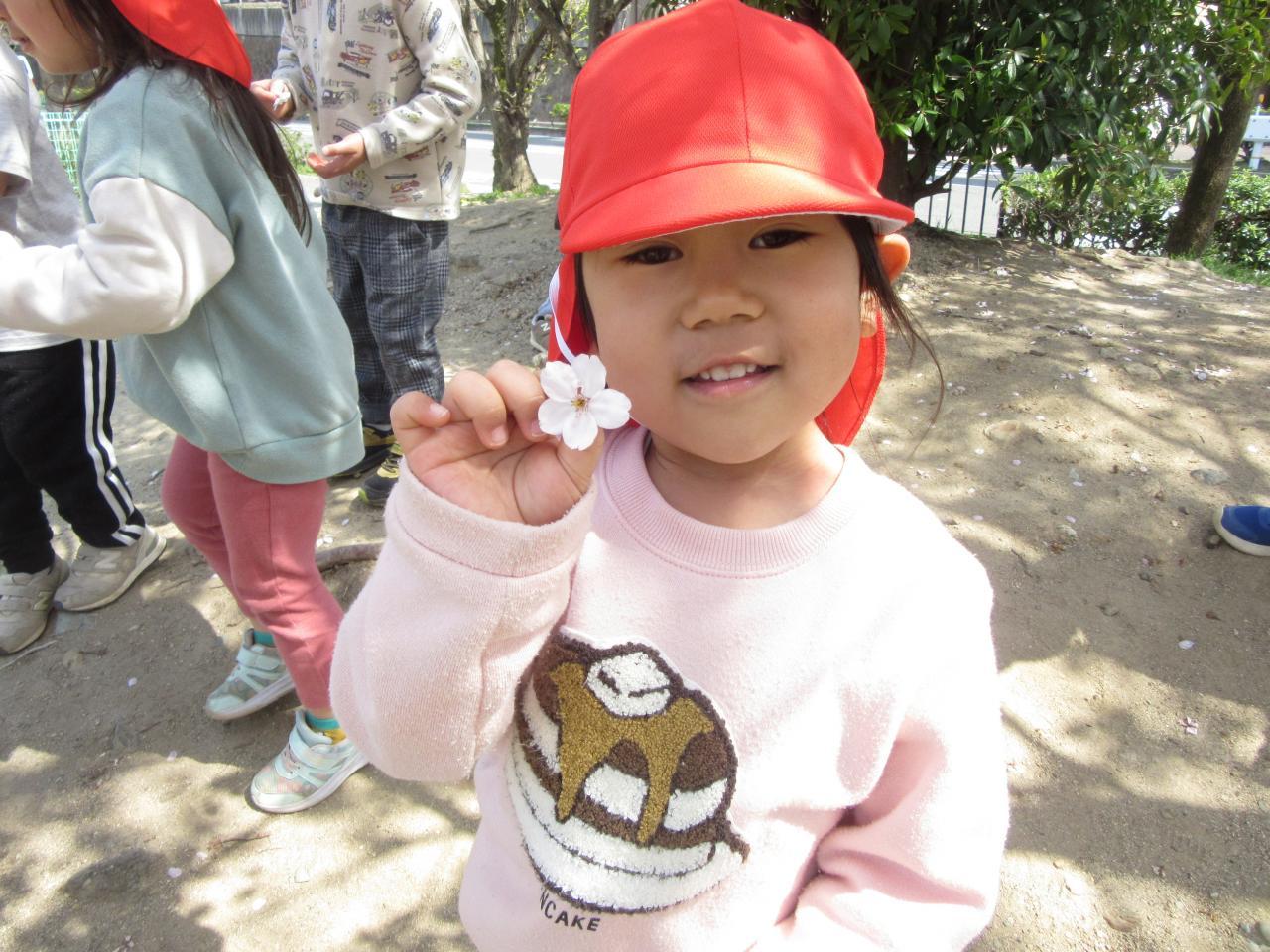 公園に咲いている桜を見たり、落ちている桜をたくさん集めました🌸