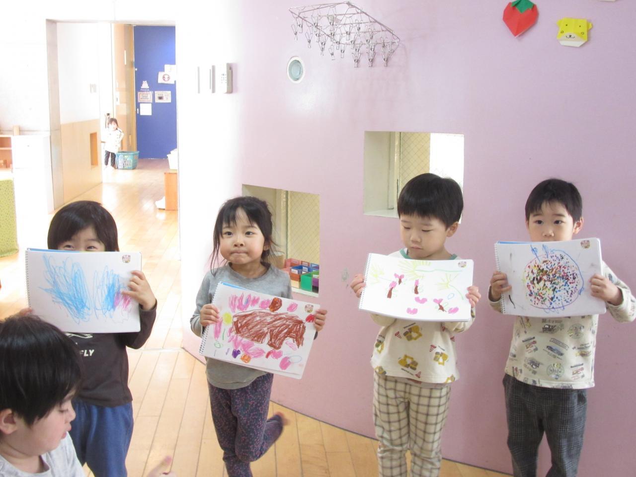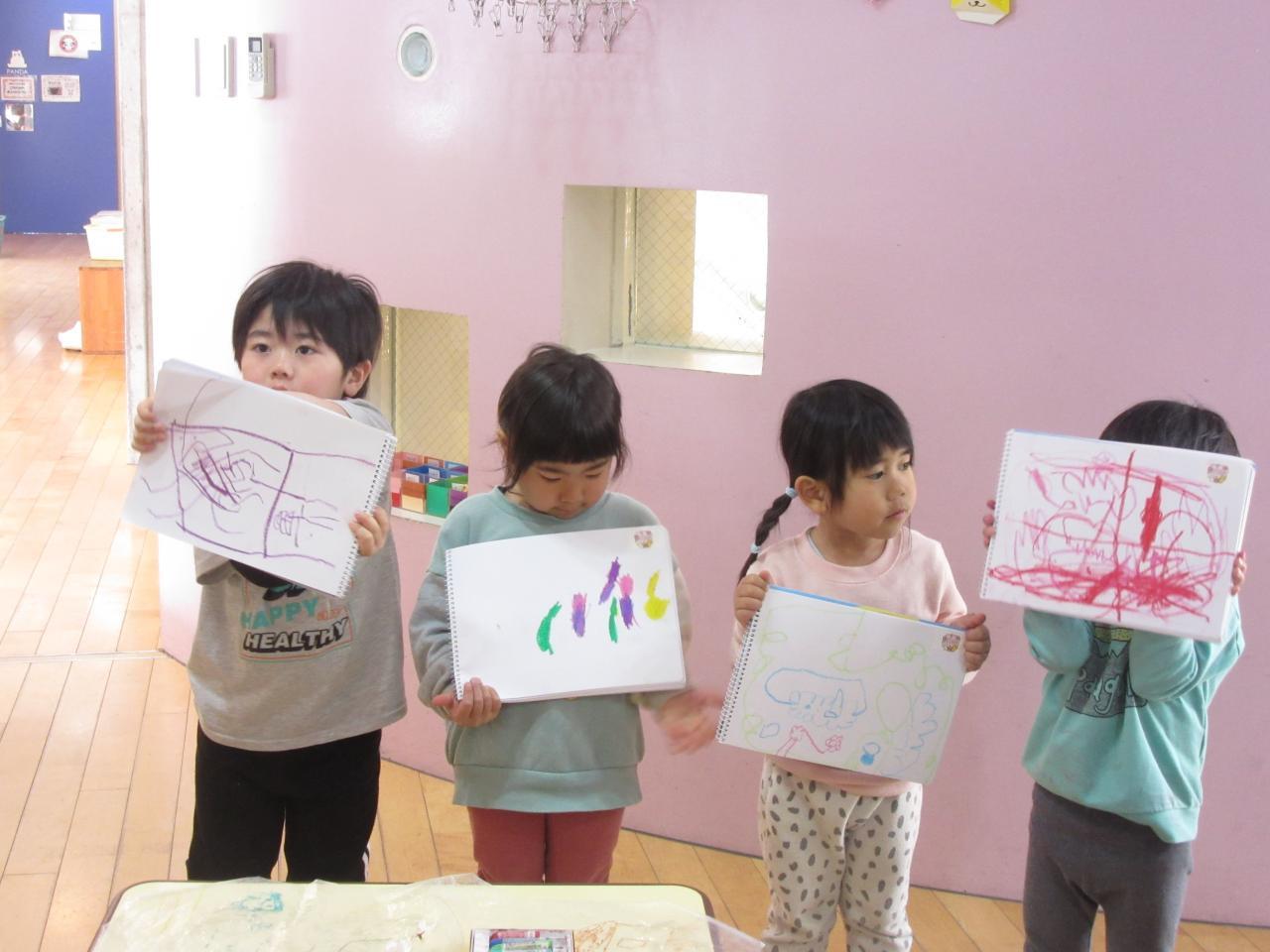 桜が完成したら前に出てみんなに描いた絵を見てもらいました👀