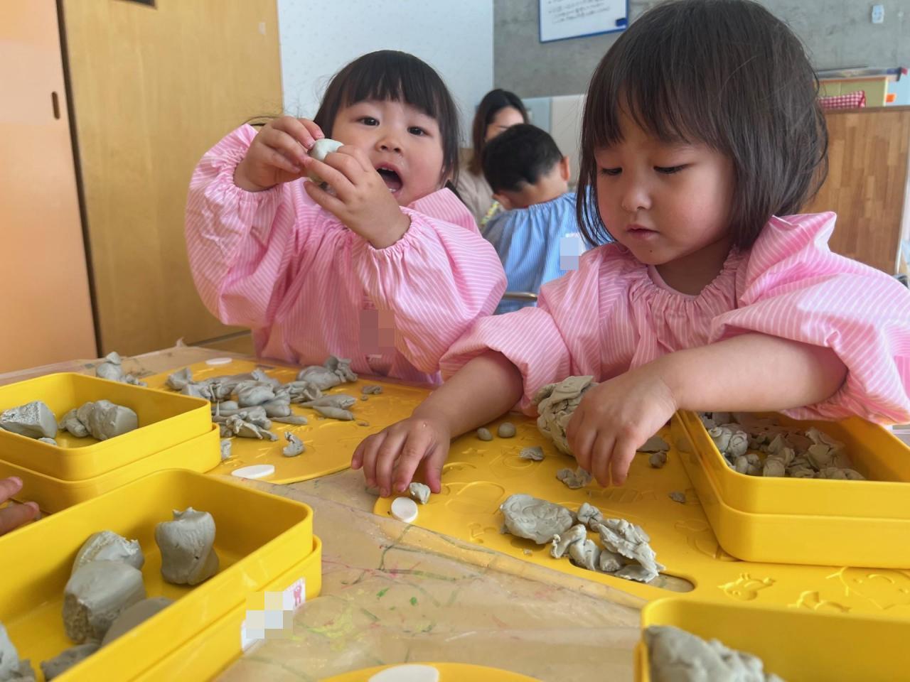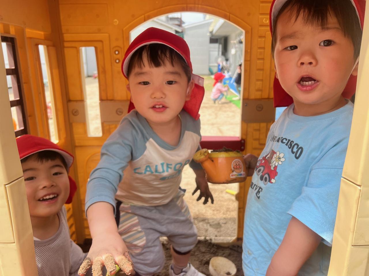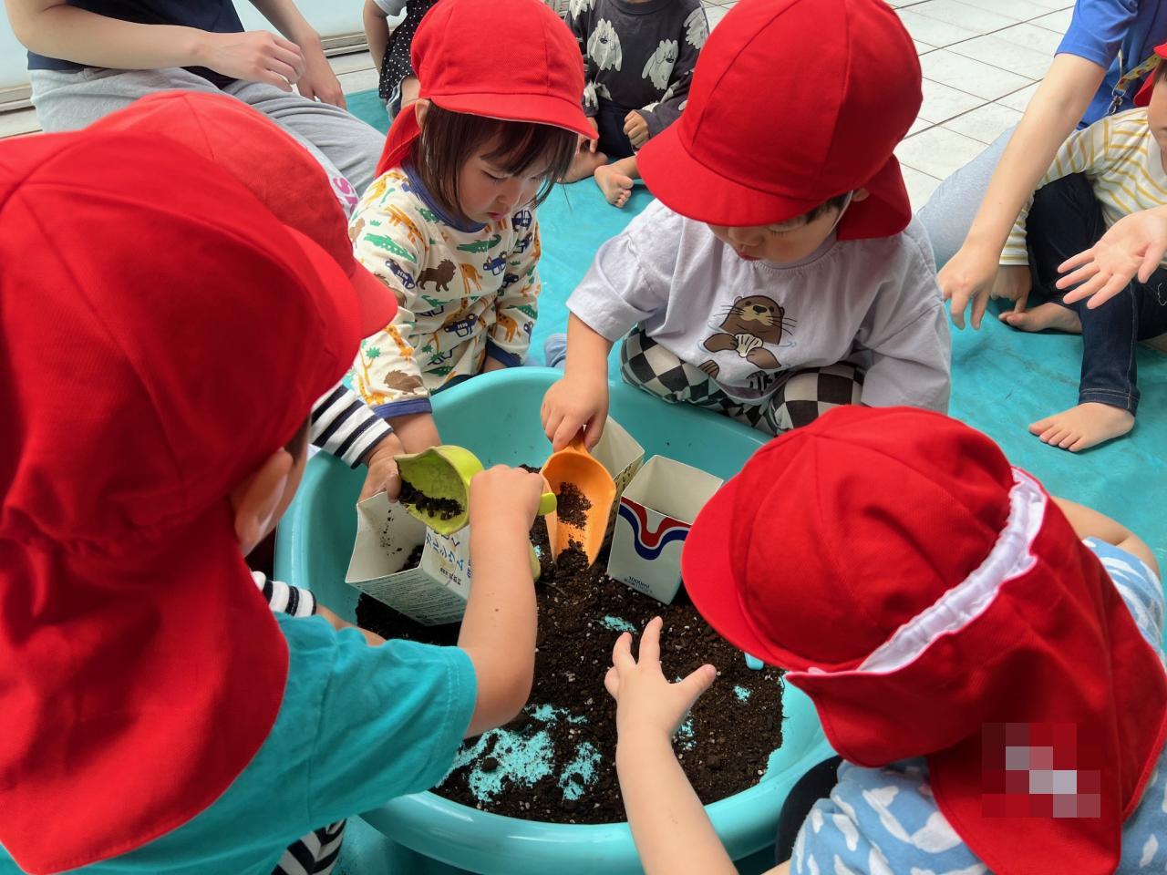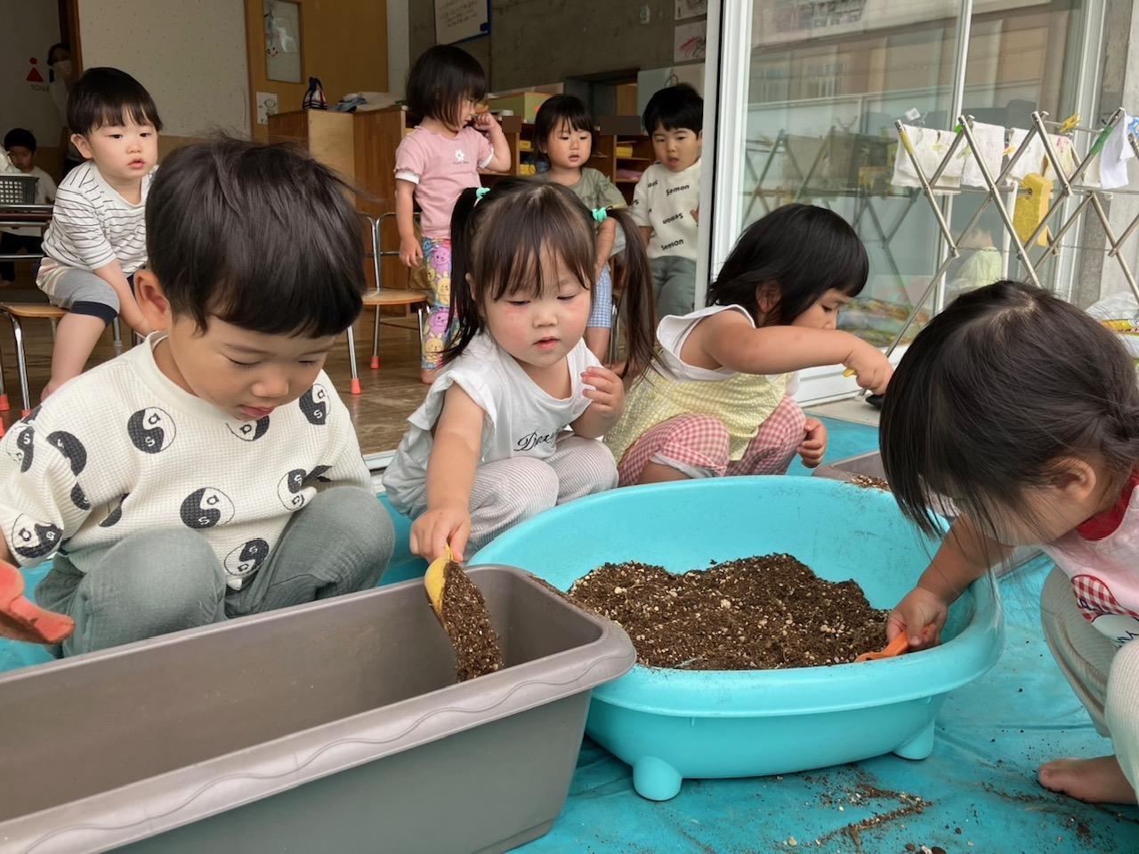 来月、泥あそびを予定しているので泥の感触に慣れるためにミニミニ泥あそびをしてみました🙂