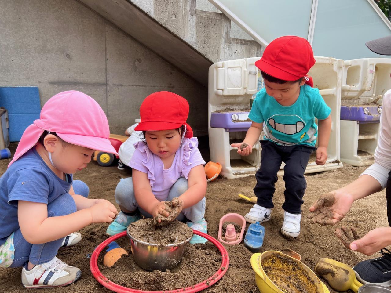 いつも触っている砂とはまた違う感触ではじめは恐る恐る触っていましたよ😄