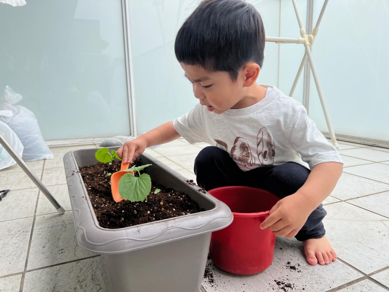 芽が出るか不安でしたが、見事全部発芽してくれました😲子どもたちと大切に育てていきます⭐