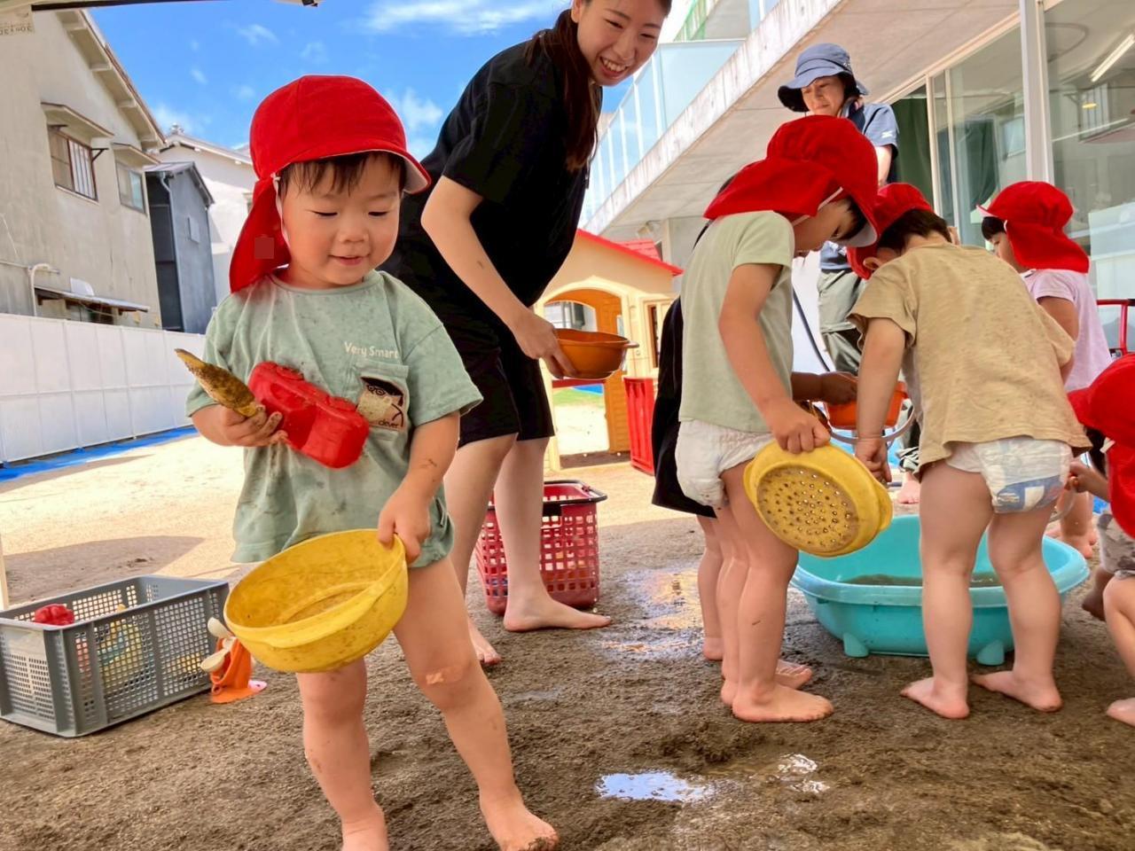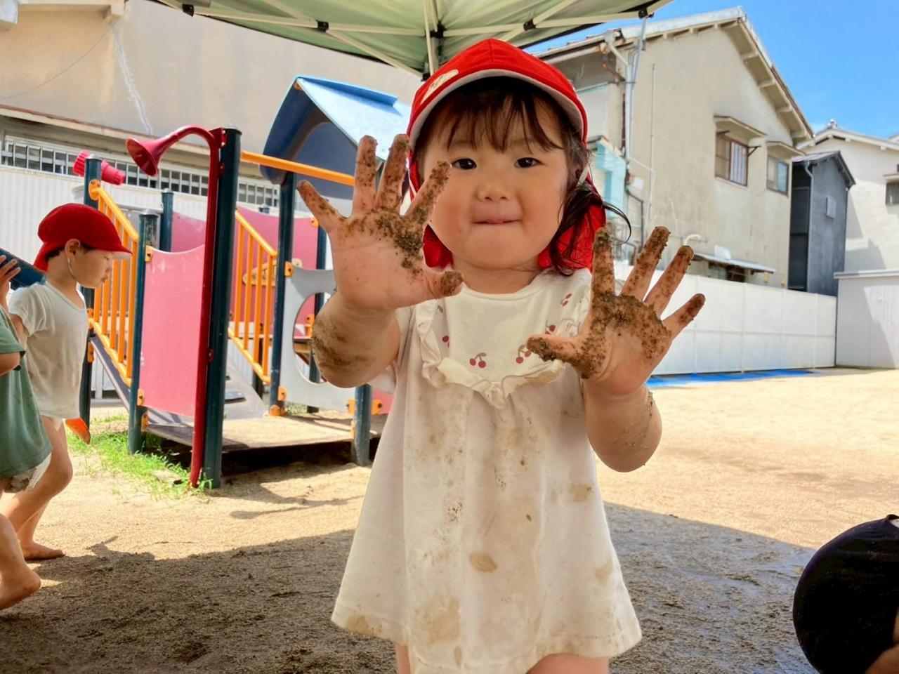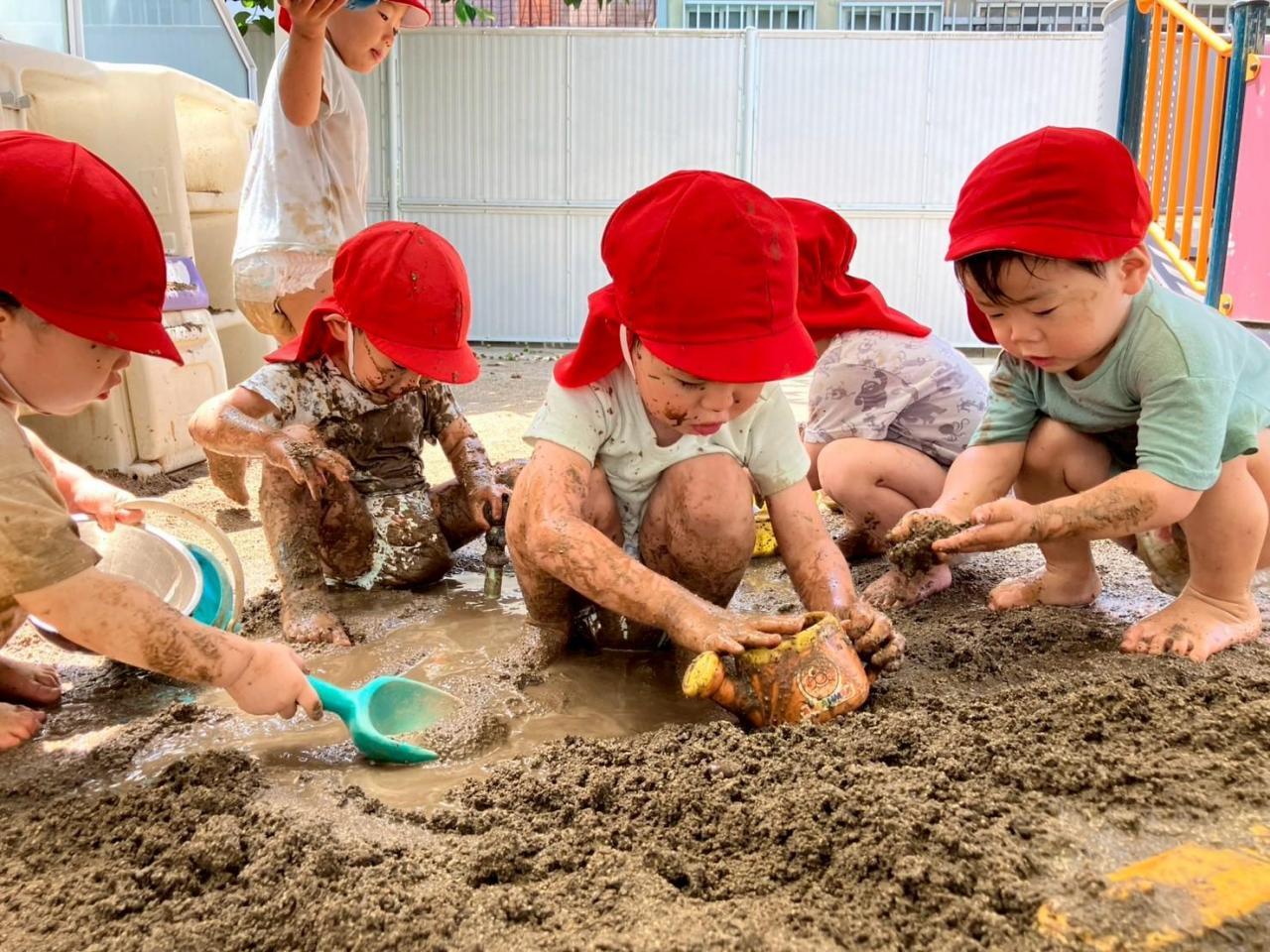 初めは泥あそびに戸惑っていたお友だちもいましたが、最後には泥まみれになりながら、思いっ切り遊びました😁✨