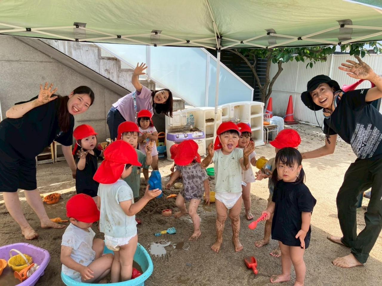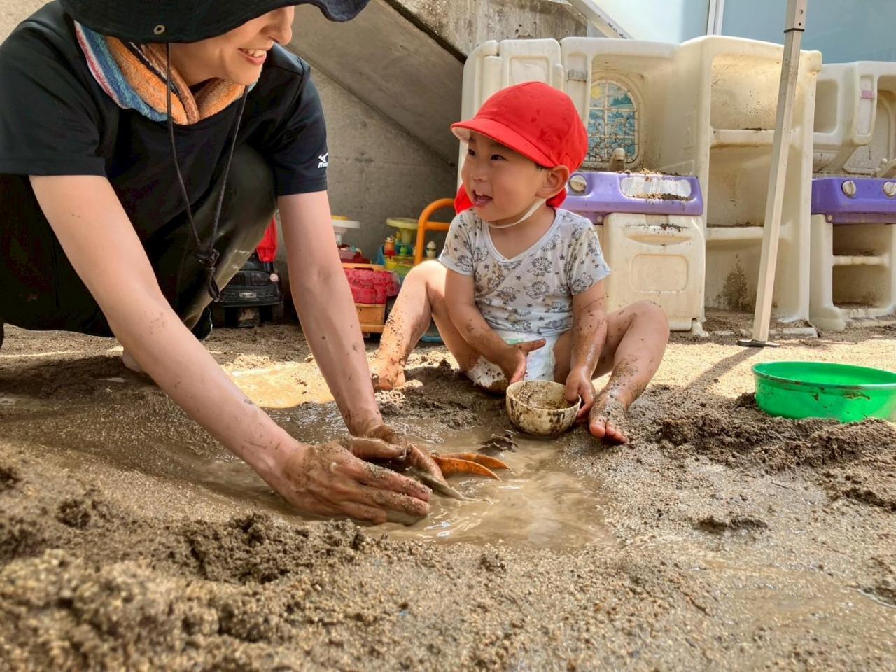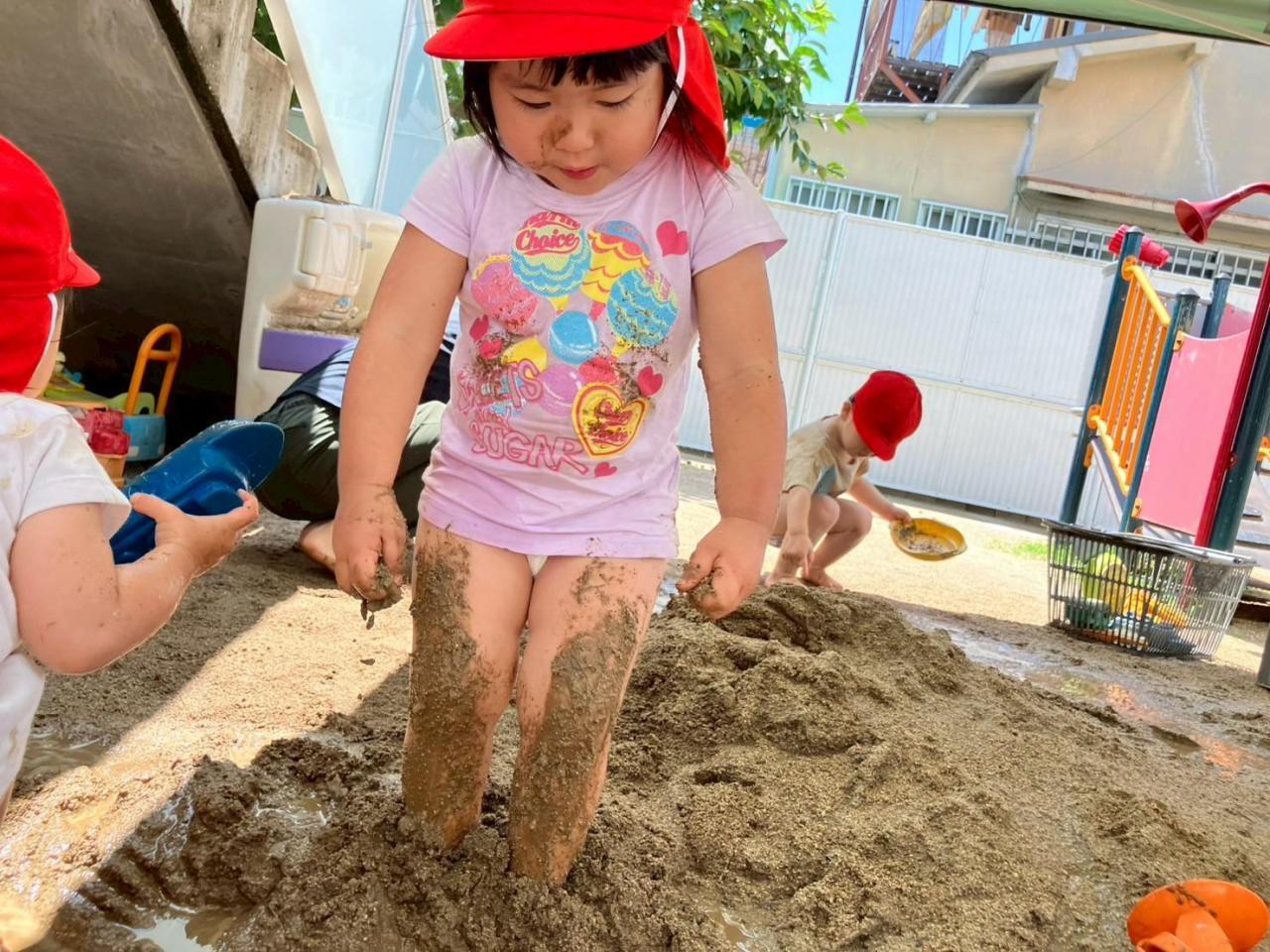 初めは泥あそびに戸惑っていたお友だちもいましたが、最後には泥まみれになりながら、思いっ切り遊びました😁✨