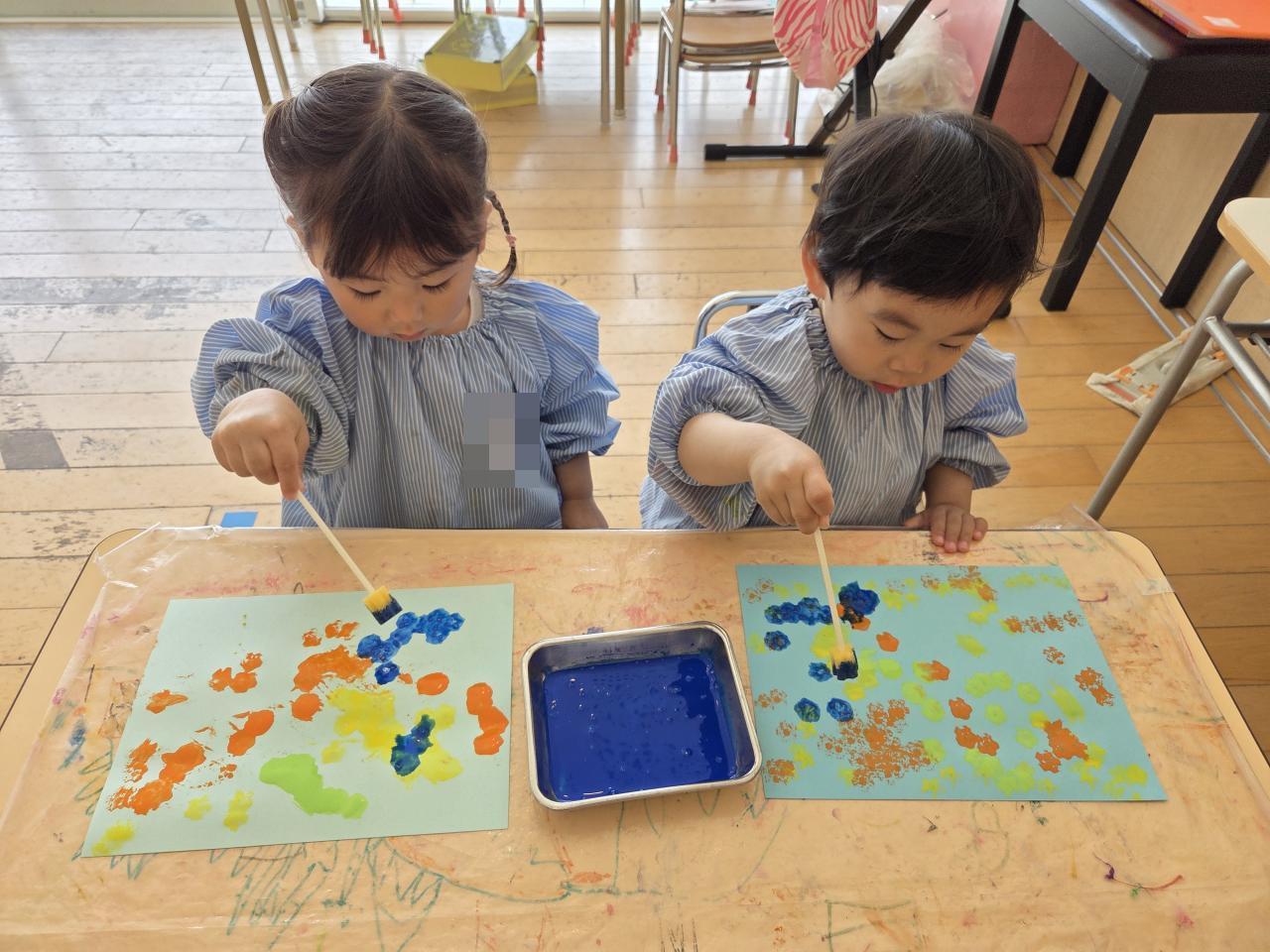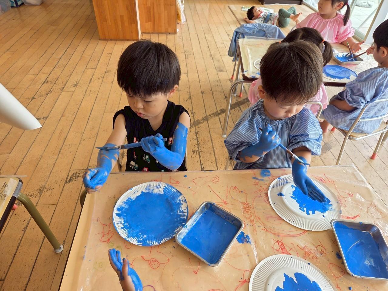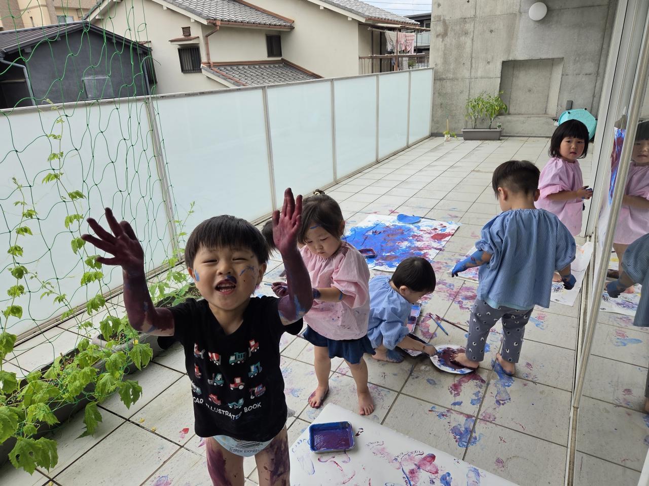 絵の具あそびからボディペインティングに発展‼️(笑)