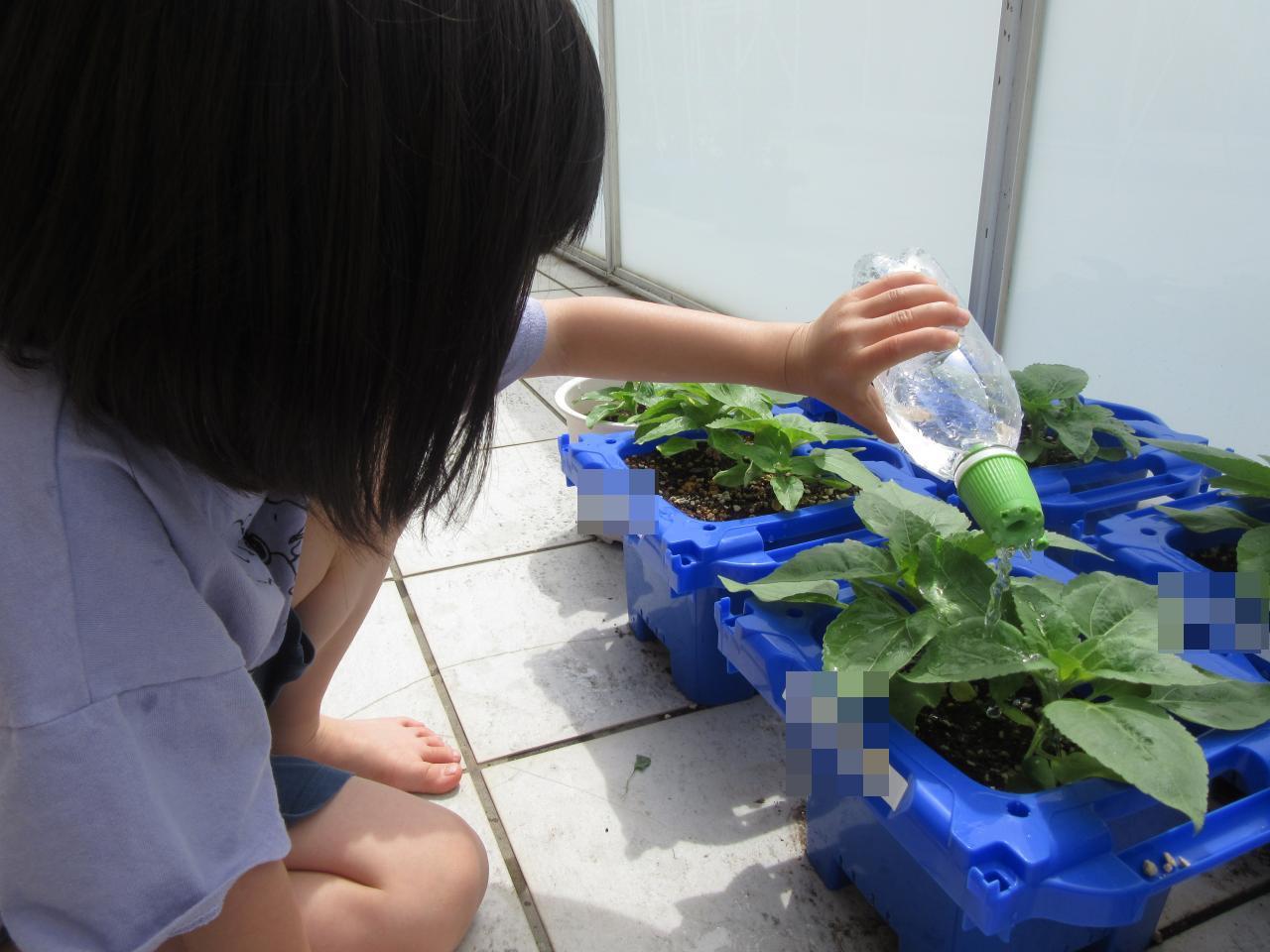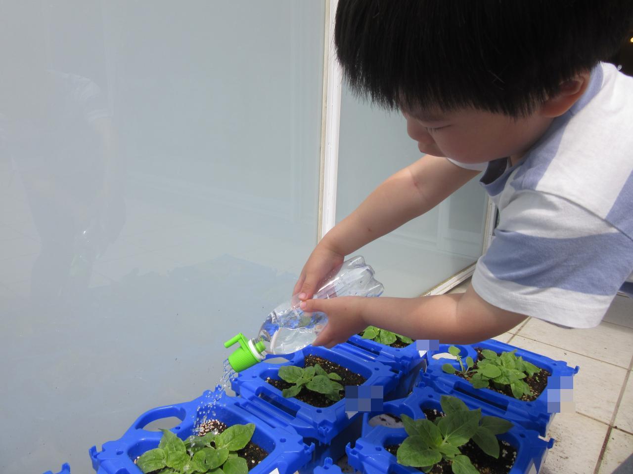 晴れの日は「今日は晴れてるから水やりするよね?」と確認してくれる子どもたちで水やりをするときも「大きくなってね!」とおまじないを言いながらしてくれています😆