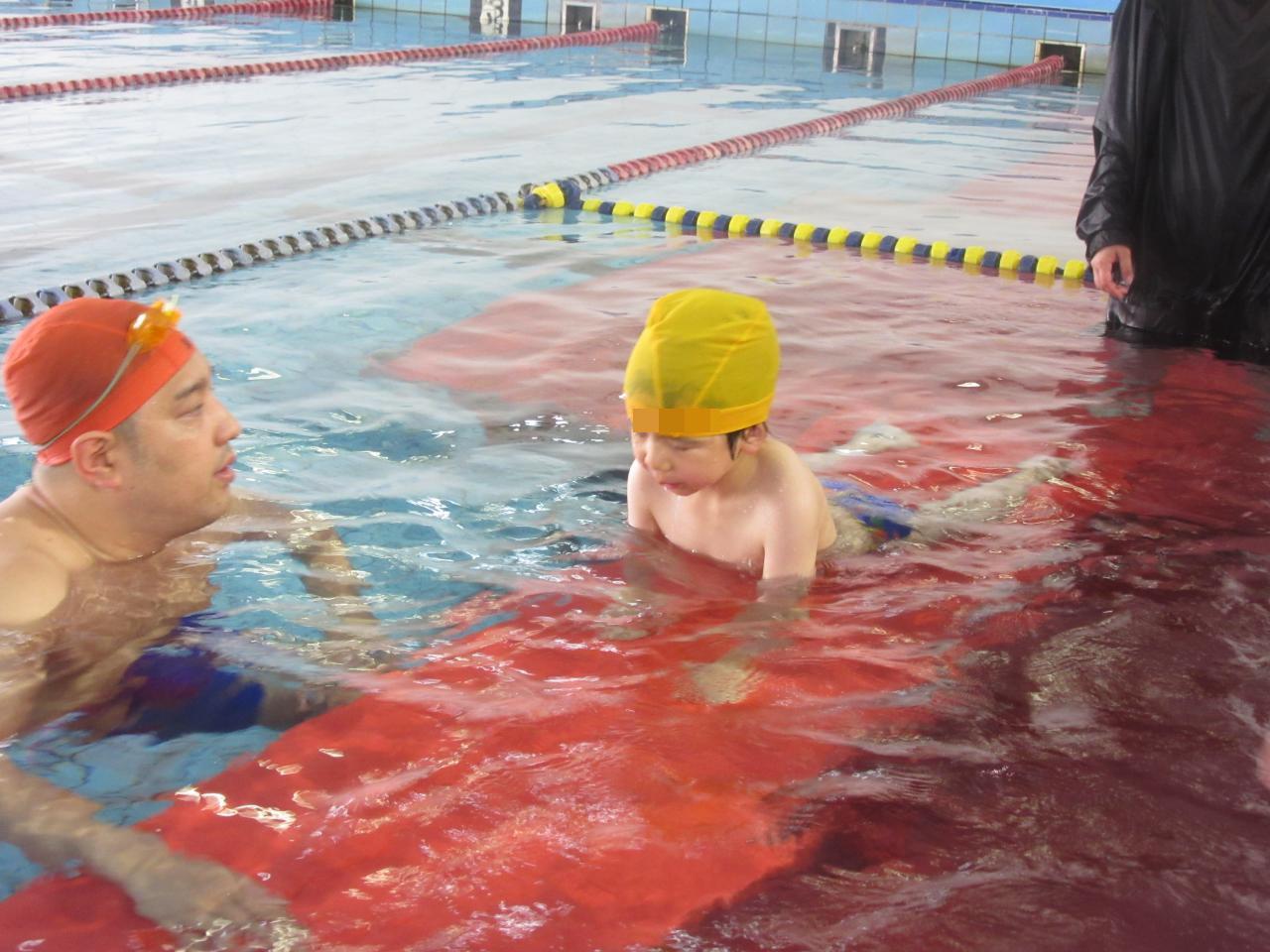 水中ではワニ歩きをしたり、コーチと一緒にお水に顔を付けたり、ジャンプをして潜ることもしています🙌