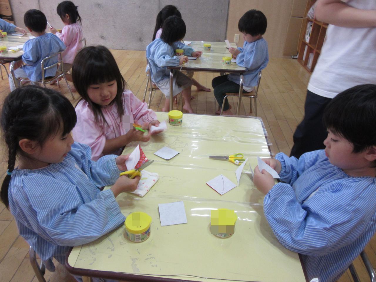 ハサミを使うのが大好きな子どもたちなので、お顔は自分で切ってみたり、織姫と彦星が乗る船は子どもたちが折り紙で作りました👏