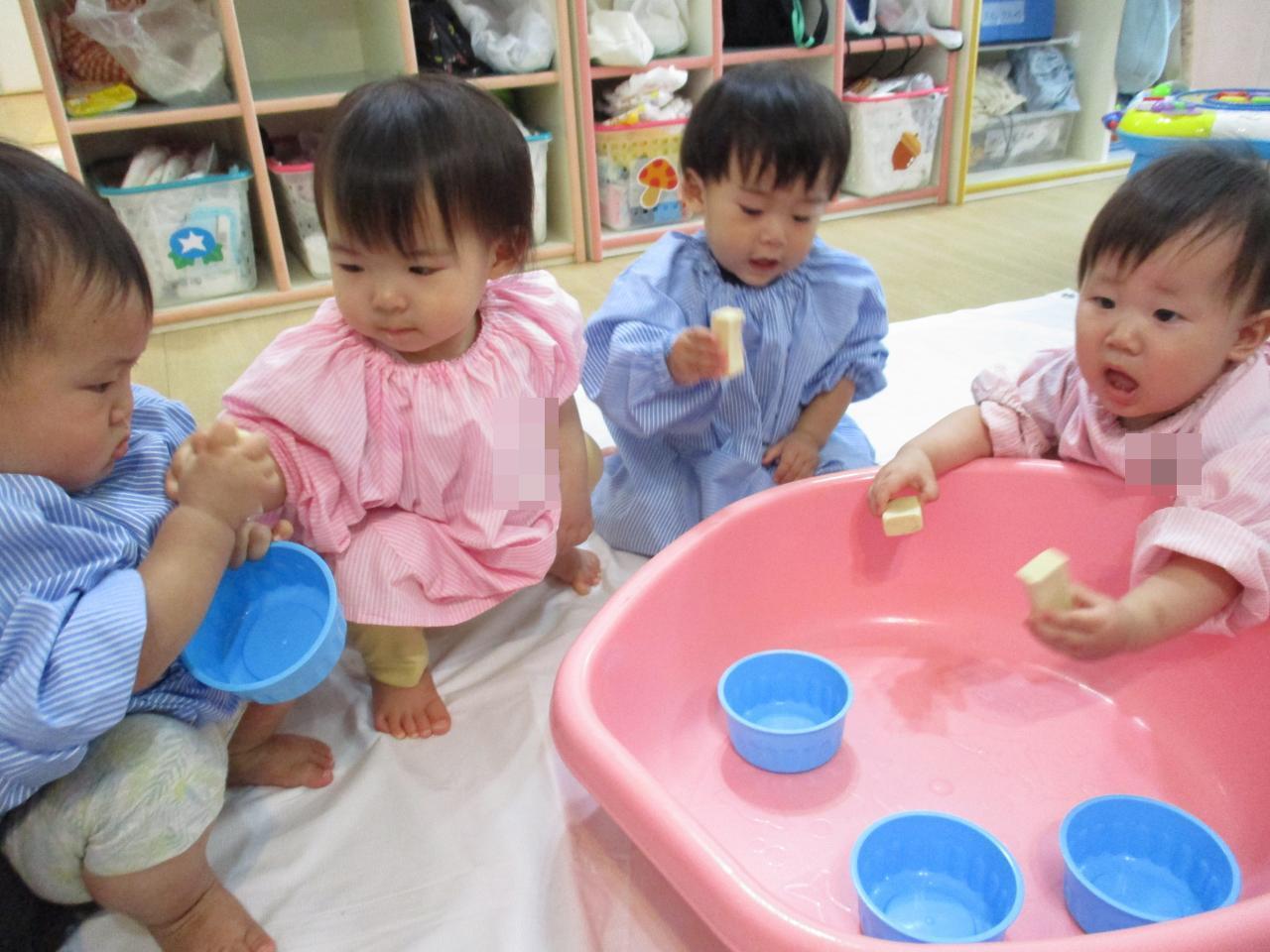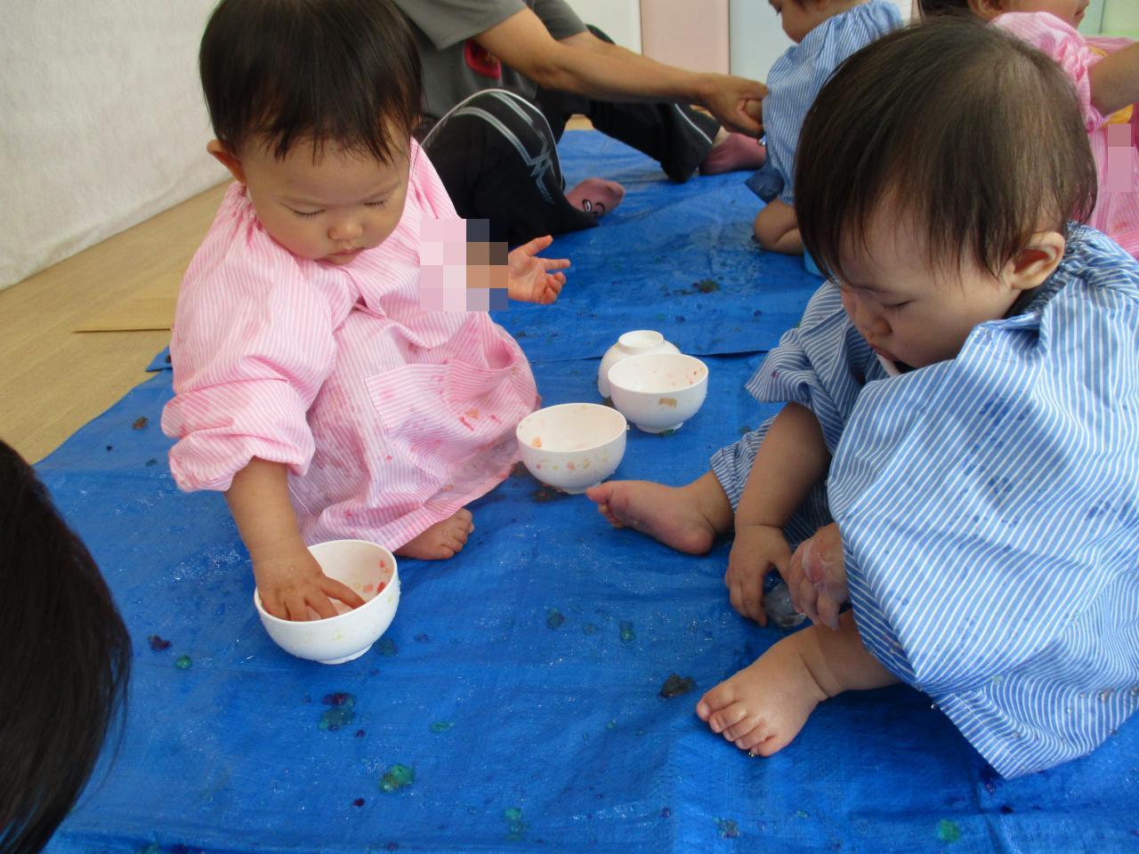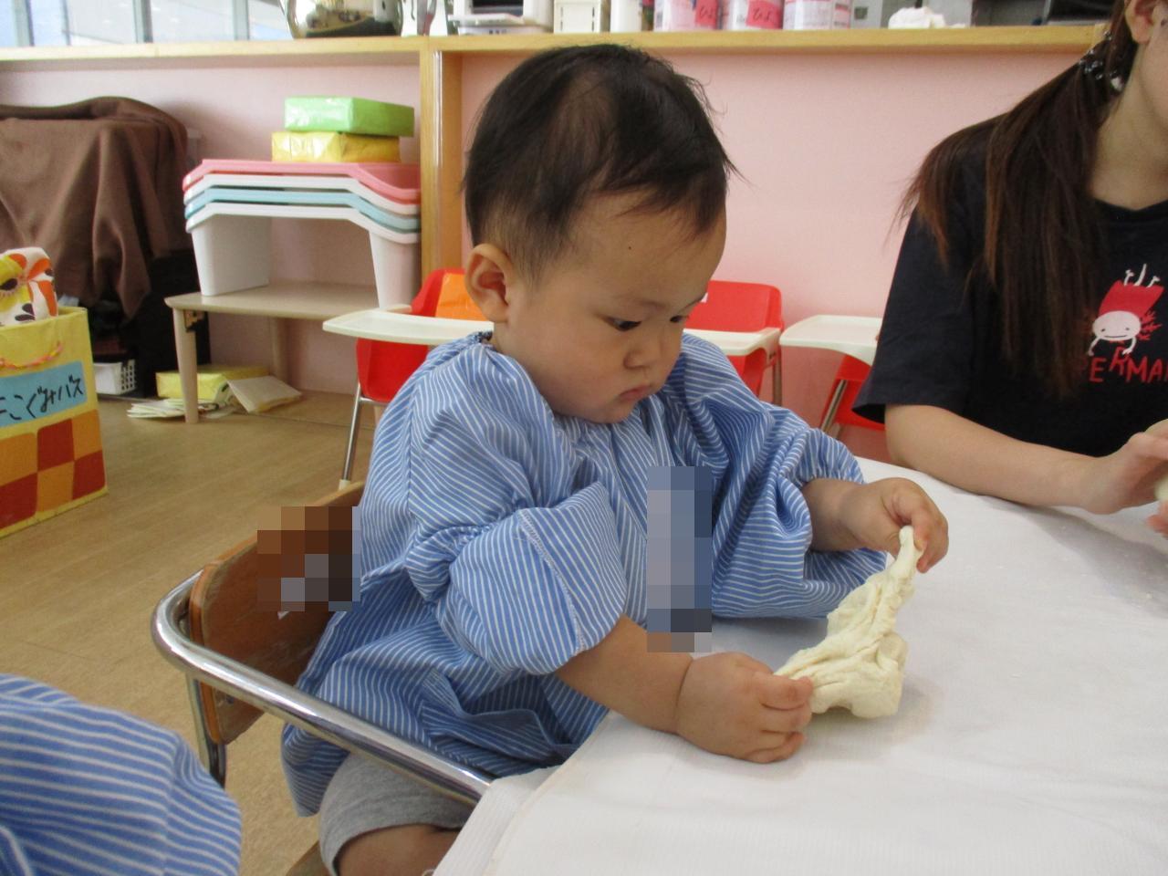 ちぎったり、引っ張ったり、握ったりして感触を楽しんでいました💕
