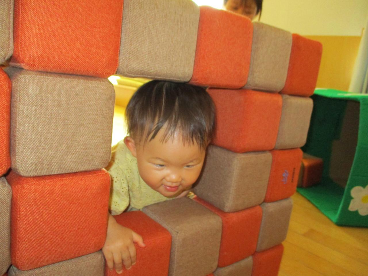 トンネルを作ると覗いたり、くぐったりして楽しんでいます🙂