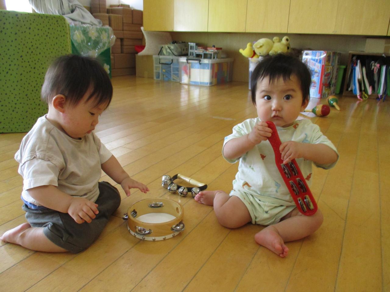 楽器あそびでは、様々な楽器の音色を楽しんでいました😄