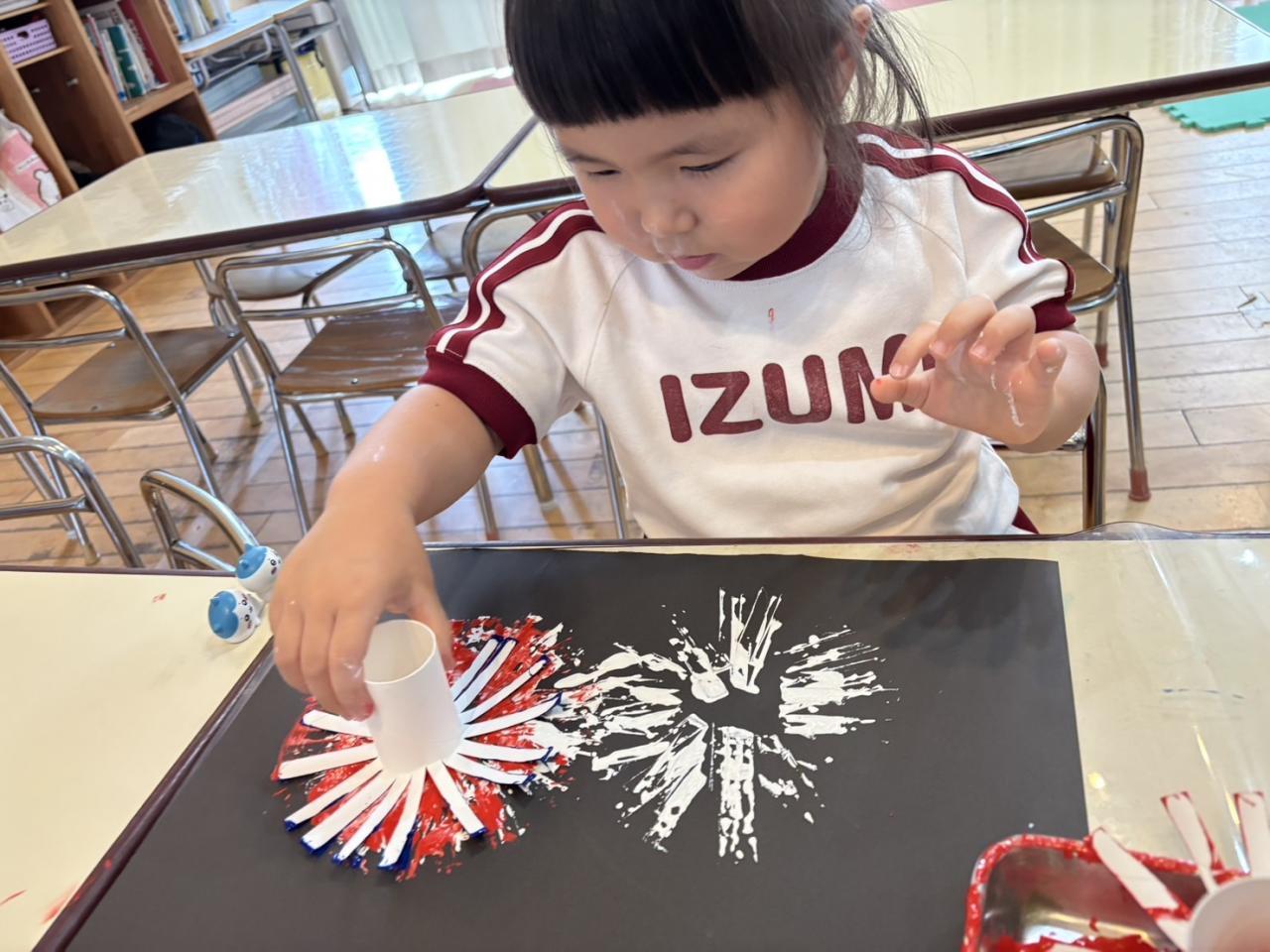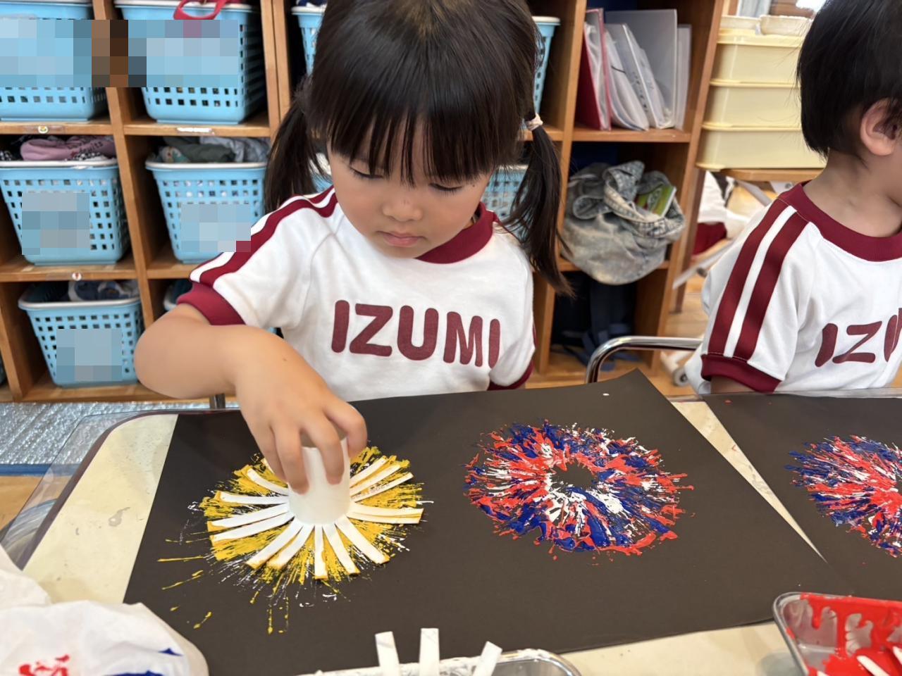 ◎きりん組さんのお兄ちゃんお姉ちゃんに向けて「お泊まり保育頑張ってね!」の気持ちを込めて「うちわ作り」をしました!🪭