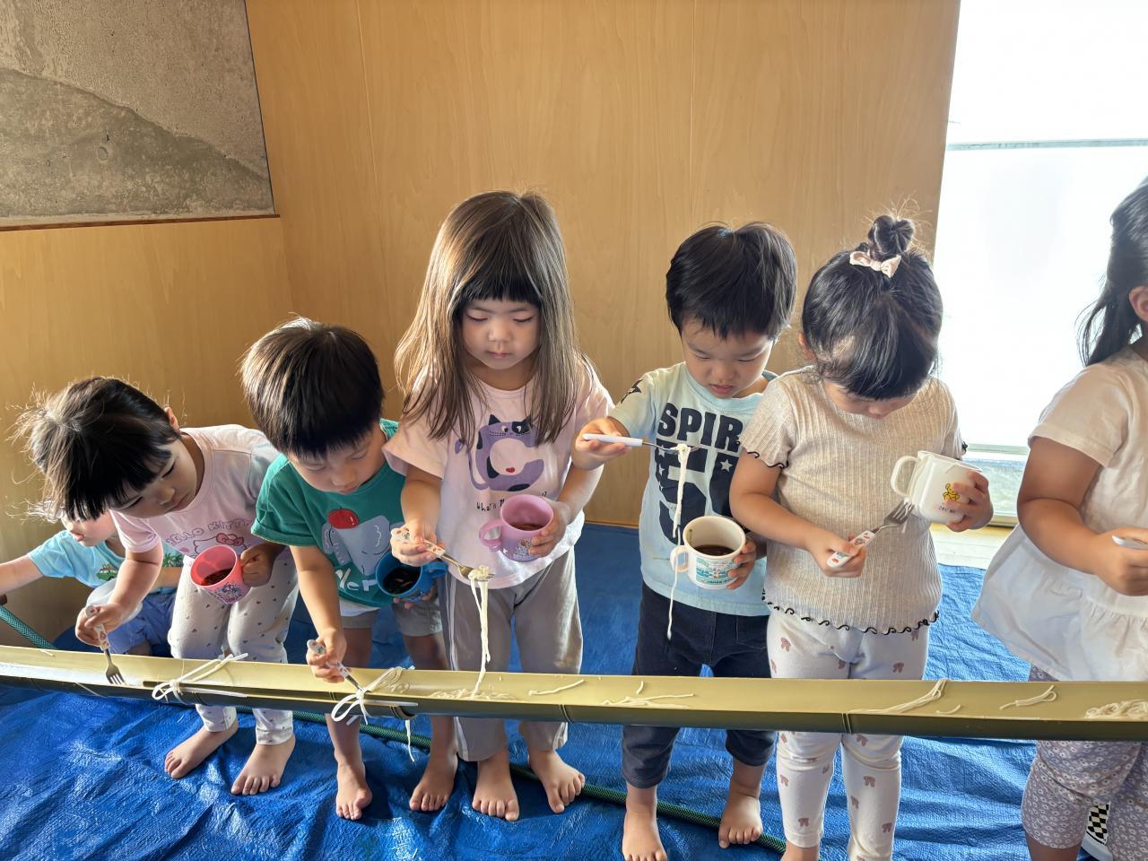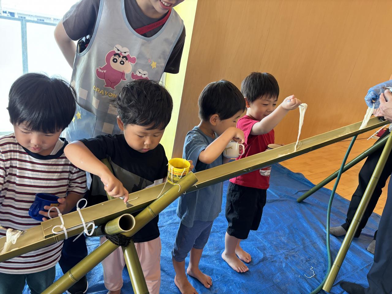 かなり速いスピードで流れてくるそうめんを上手にキャッチして美味しそうに食べる子どもたちでした!😋