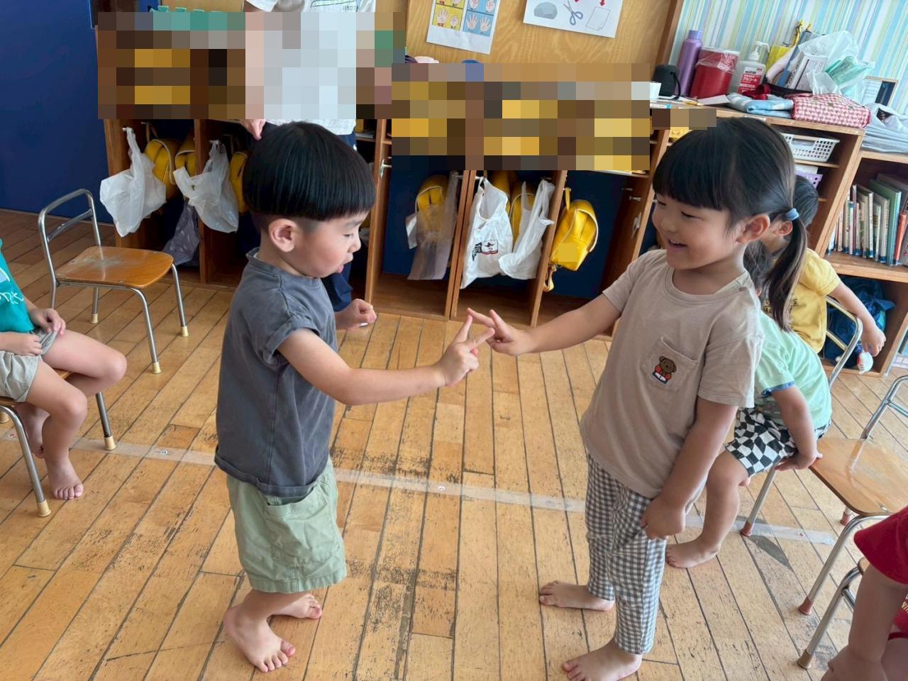 最近は、じゃんけんに興味を持つ姿が多くなってきたので、あそびの中にじゃんけんを取り入れました🎶