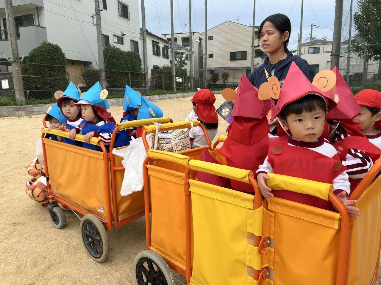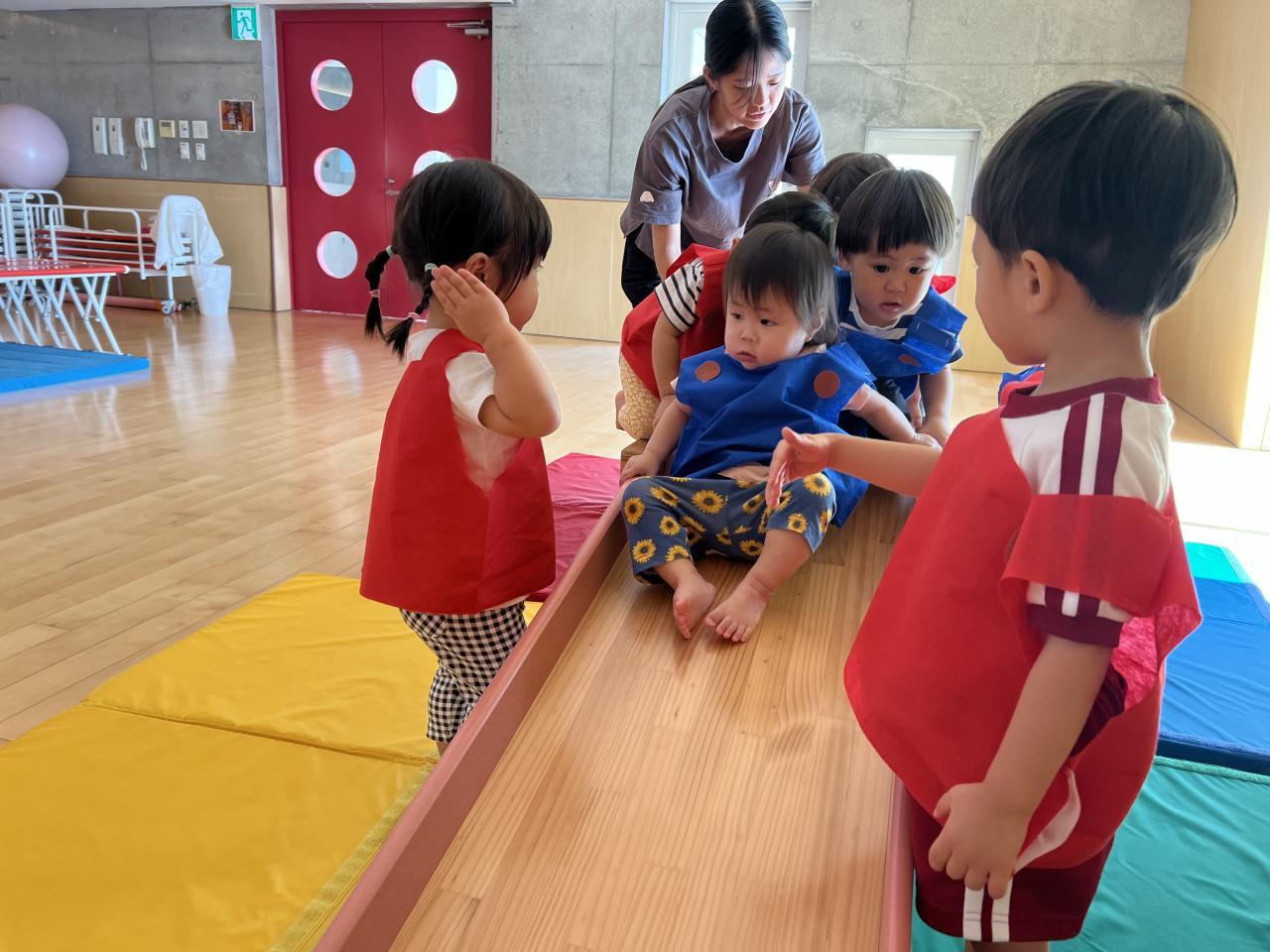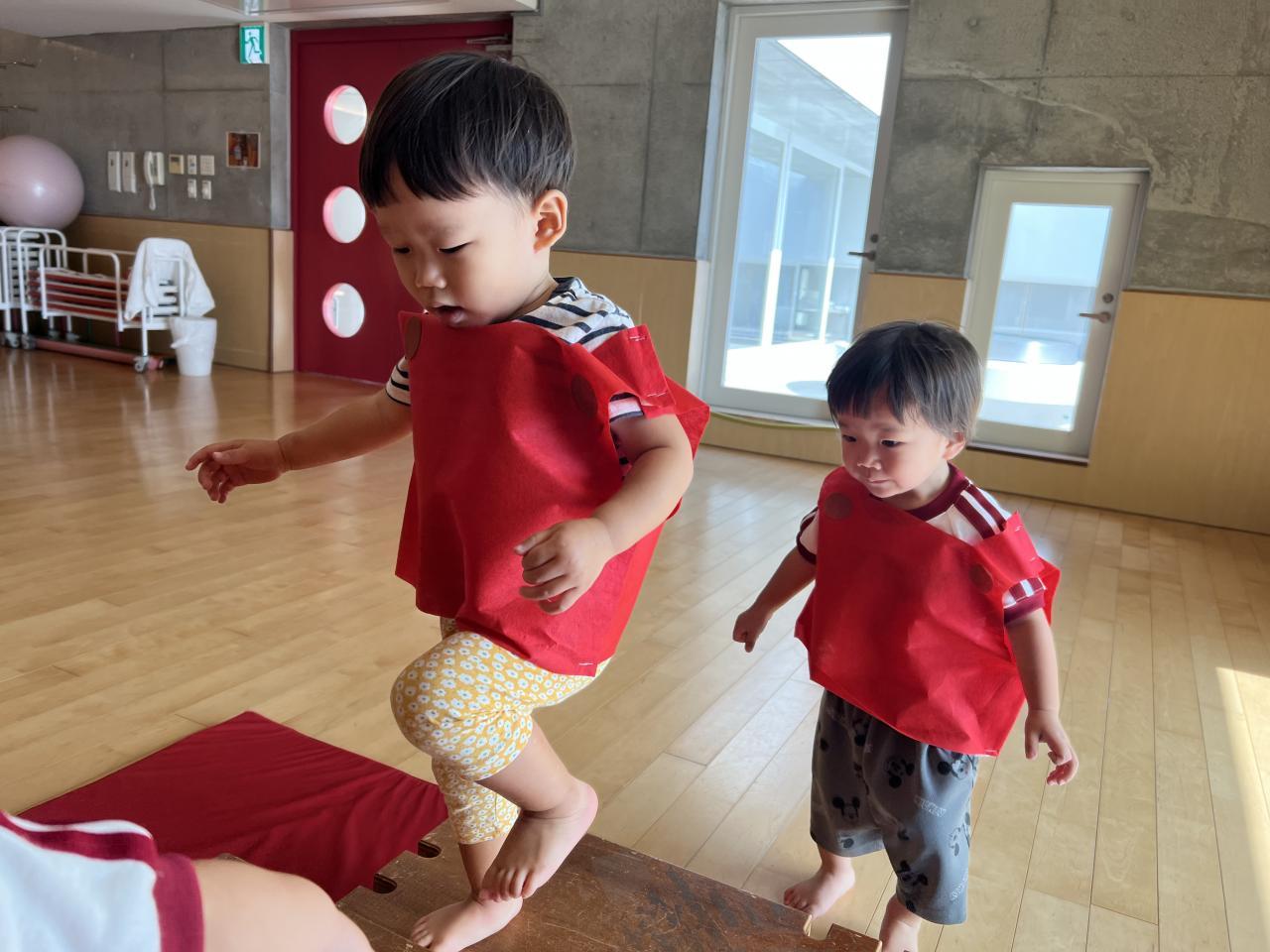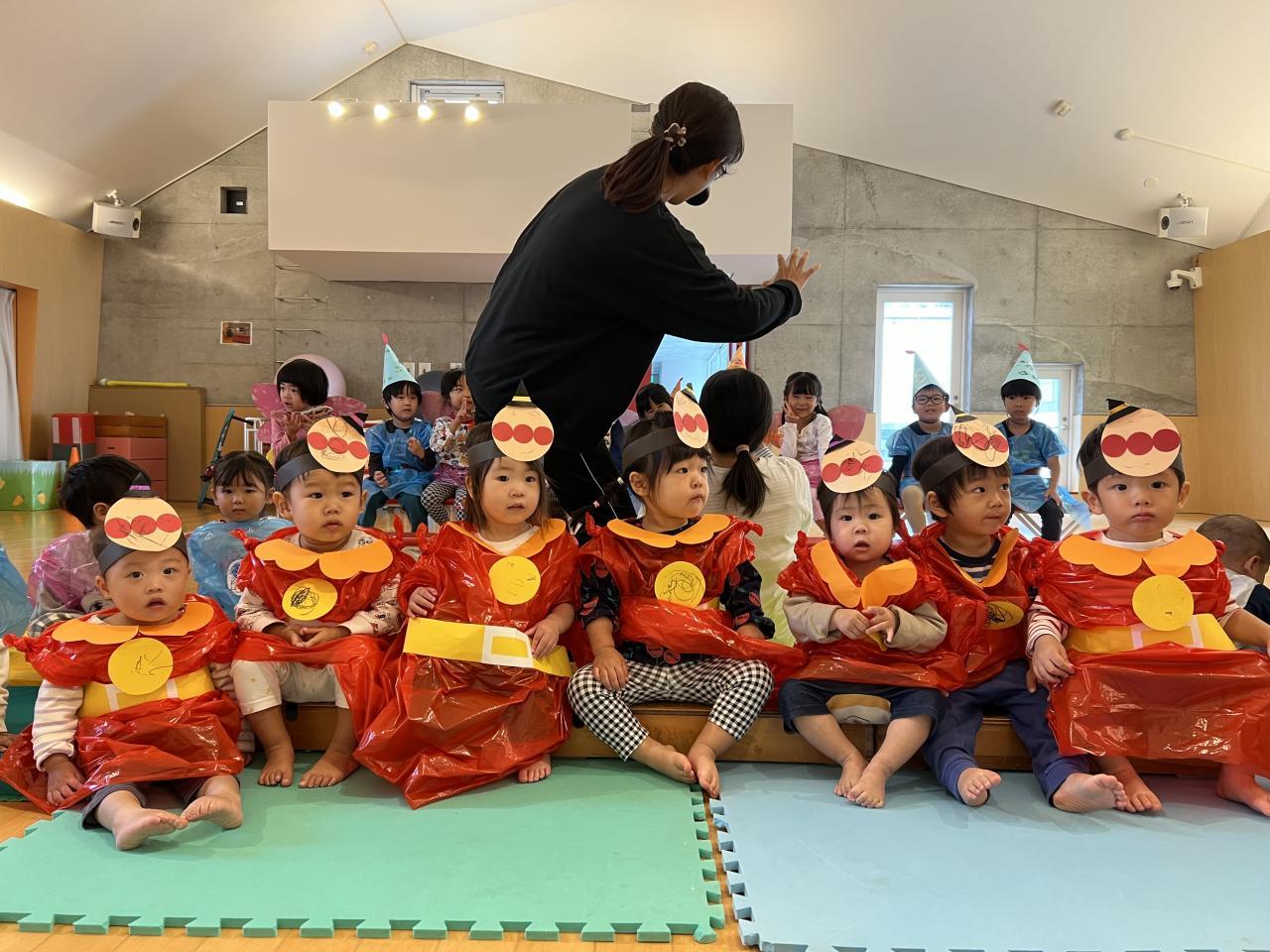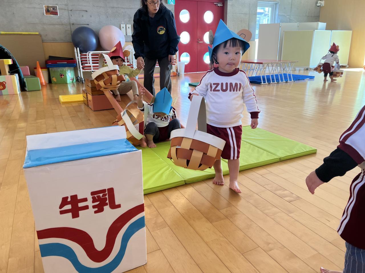 体操あそびの中で衣装を身にまとったり、小道具に親しみを持ったりし運動会への期待を膨らませました♪