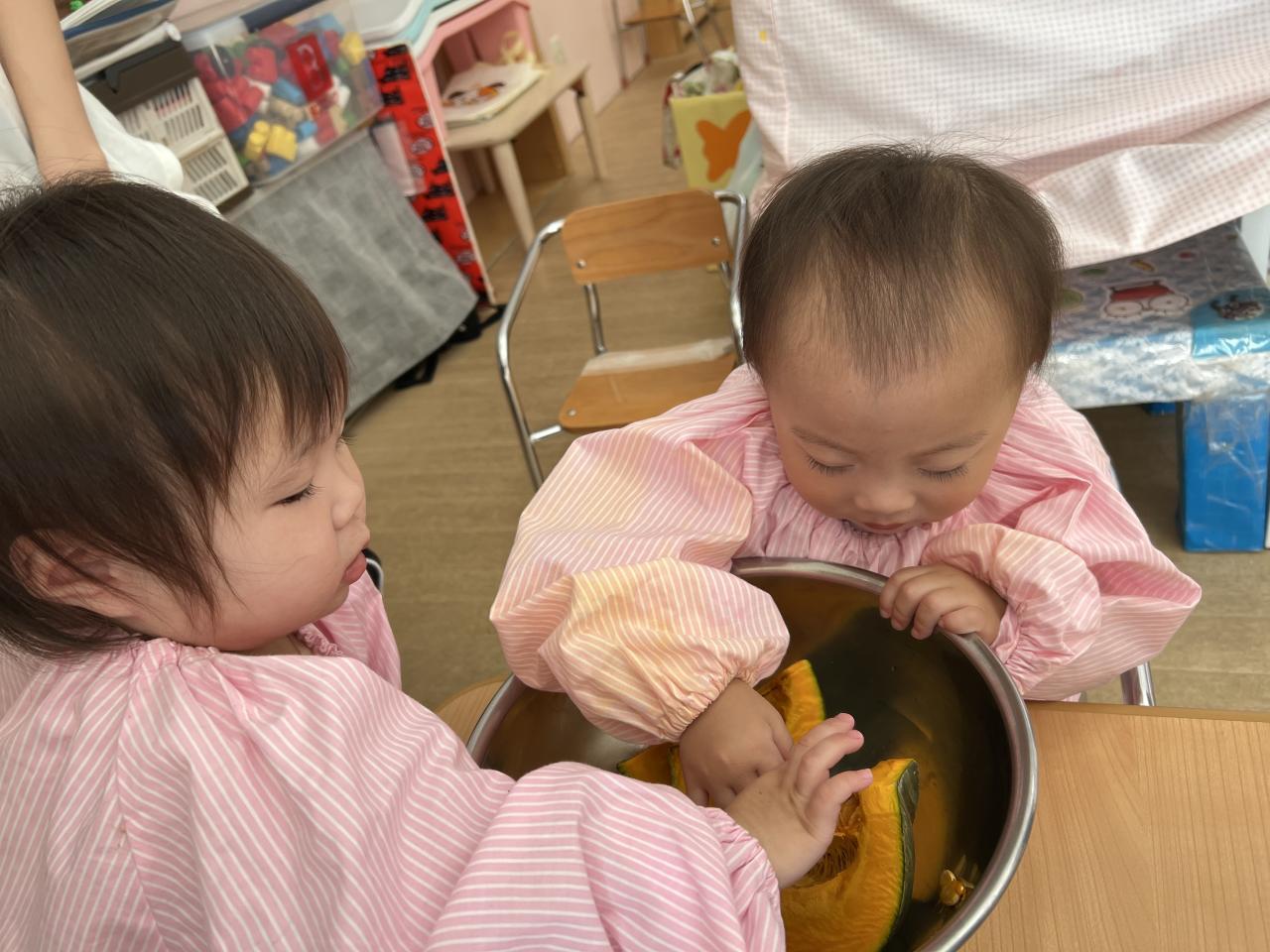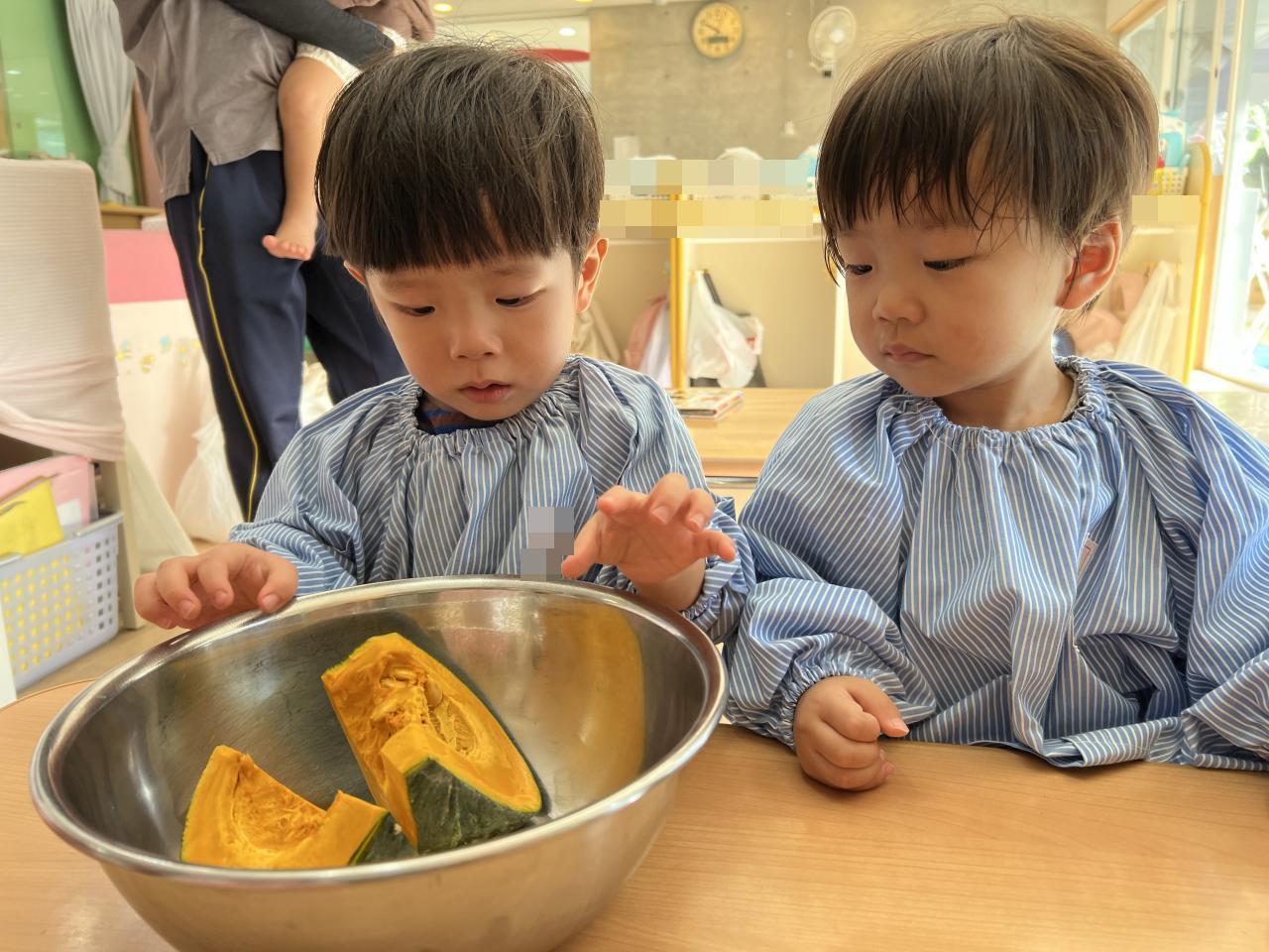 食育「かぼちゃのわたとり」にも挑戦しました🎃