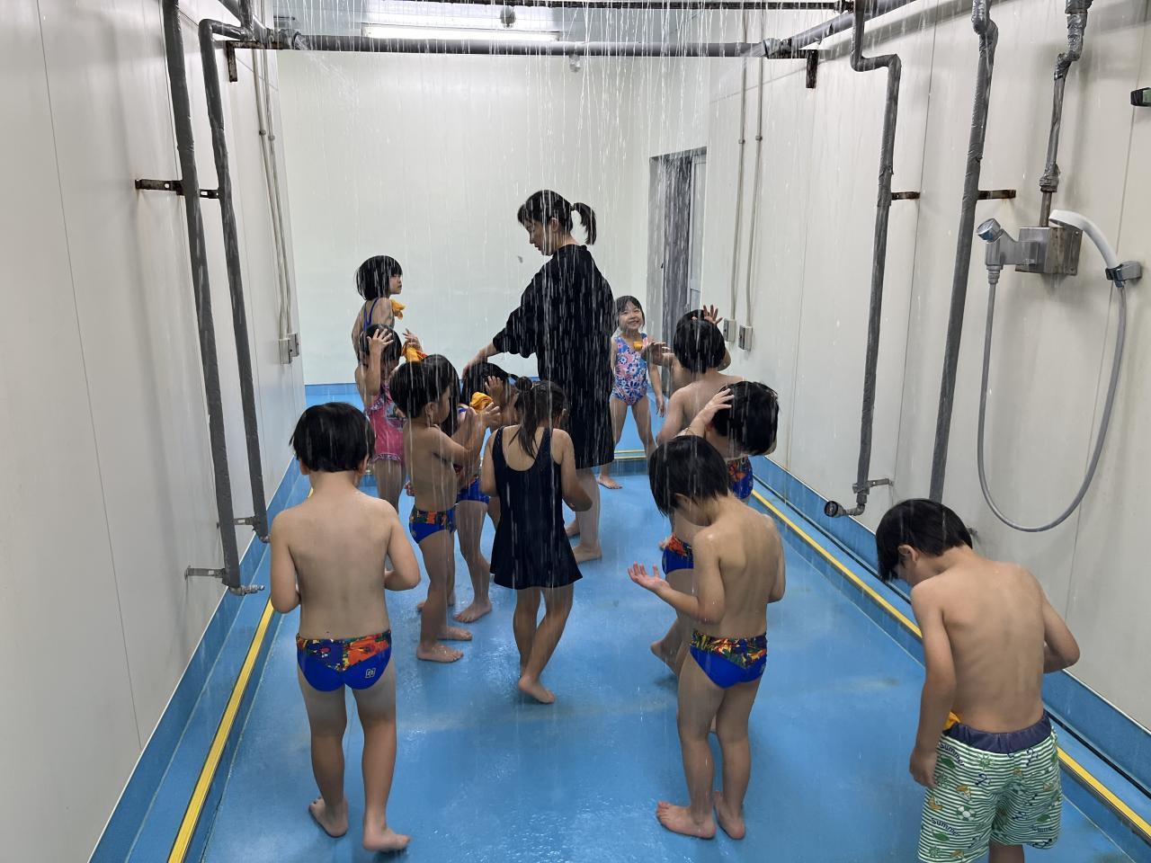 シャワー後はコーチの話を聞いて身体に水をかけたり、バタ足をしています✨