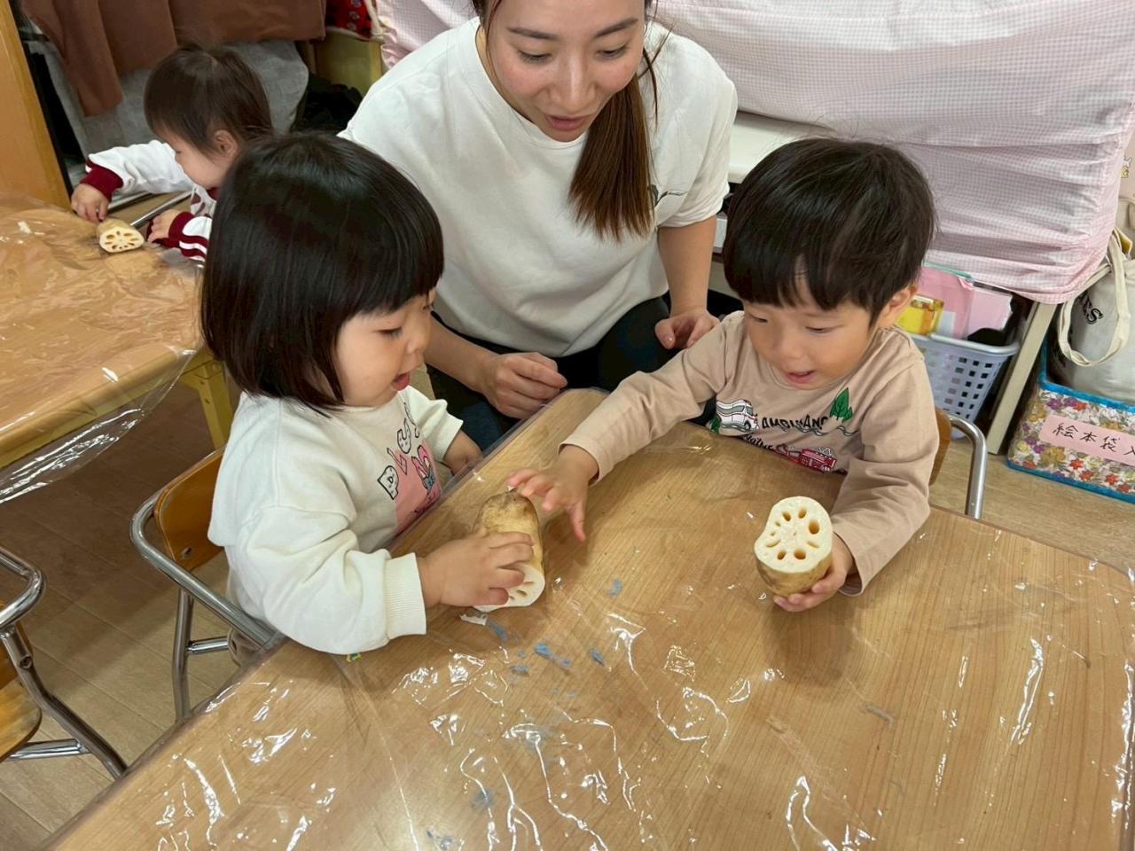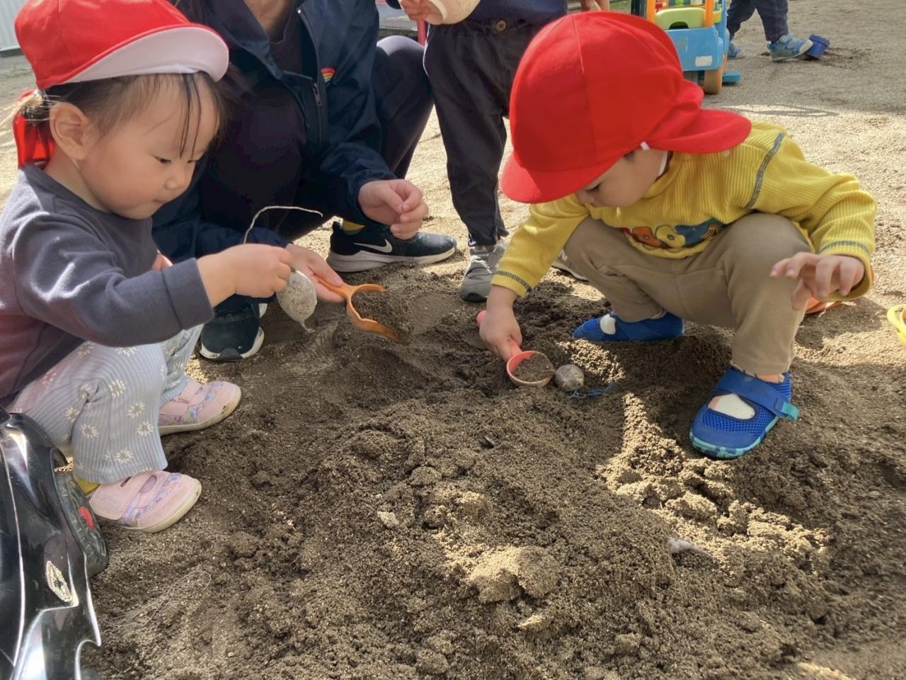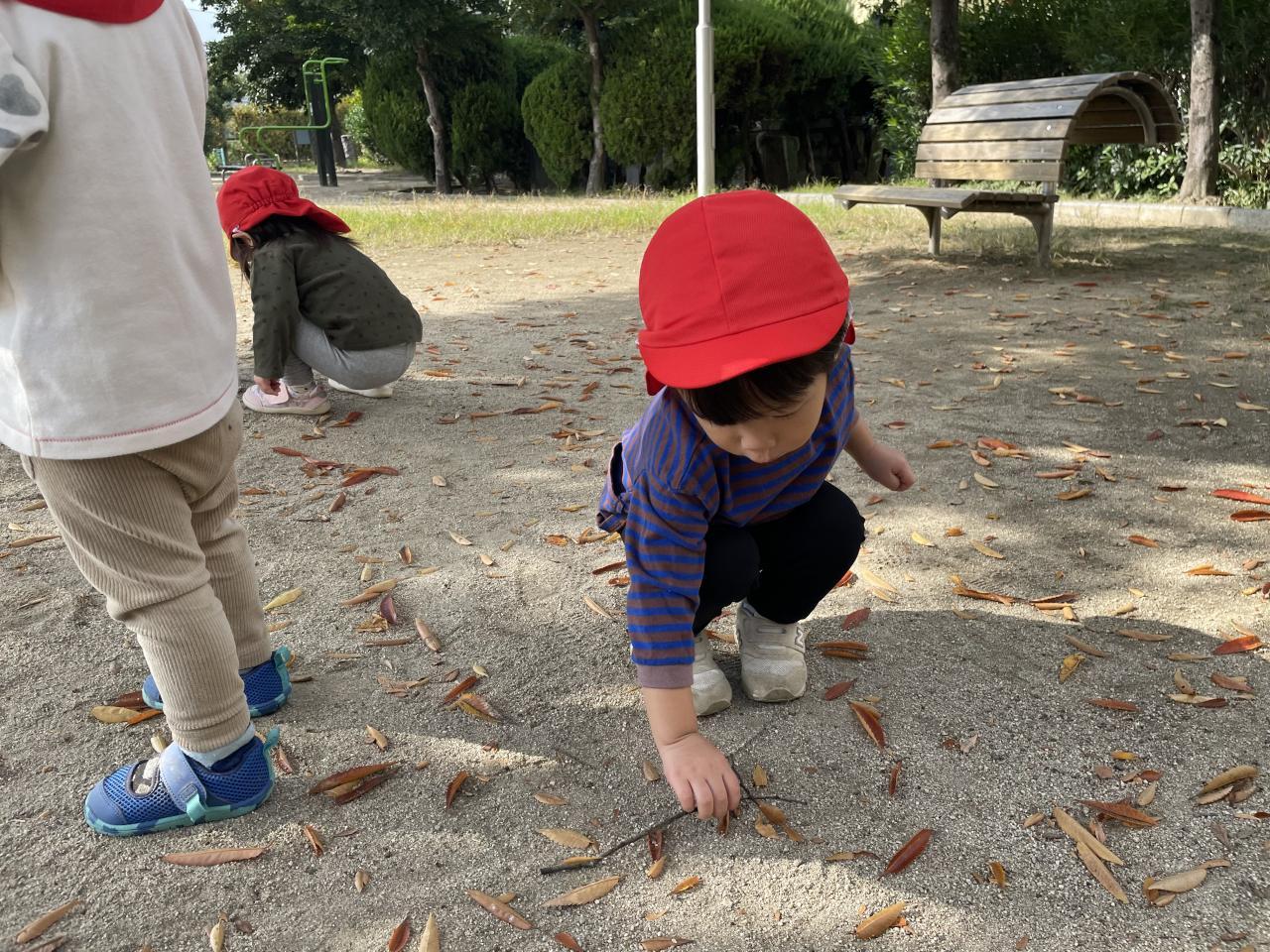 先月に比べ少し肌寒くなりましたが、寒さに負けず元気いっぱいで戸外あそびを楽しんでいましたよ😊