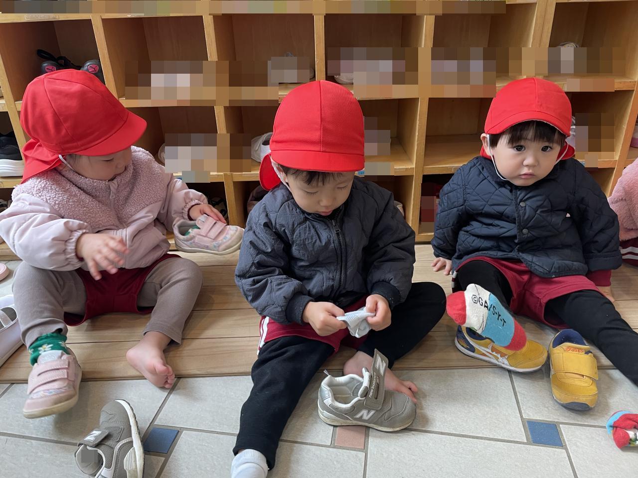 最近では“靴、靴下をまずは自分で履いてみよう!”と頑張っています🔥どんどんと履くのが上手になっていくりすぐみのみんなです✨