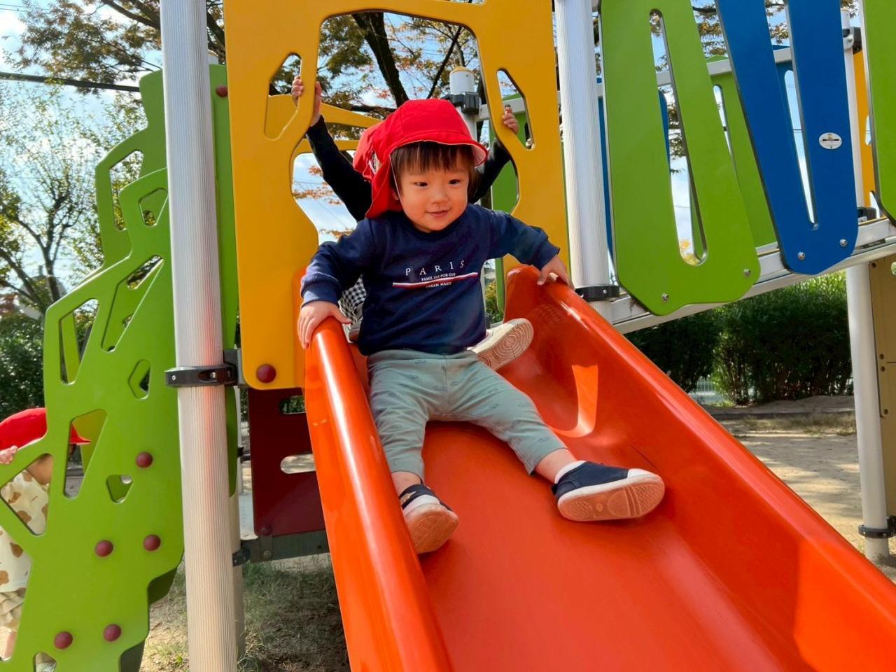 カートに乗らず、お友だちと手を繋ぎながら上手に歩くことができています✨公園に着くと伸び伸びと遊ぶ子どもたちです😆