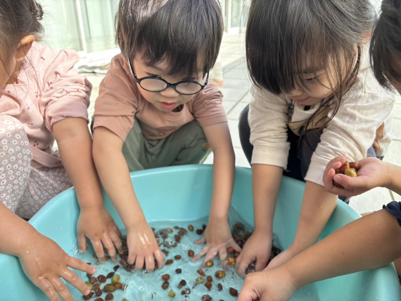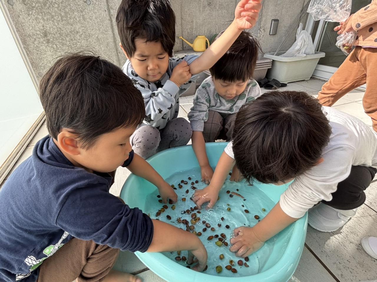 拾ってきたどんぐりはみんなで綺麗に洗い、製作に使いましたよ✨