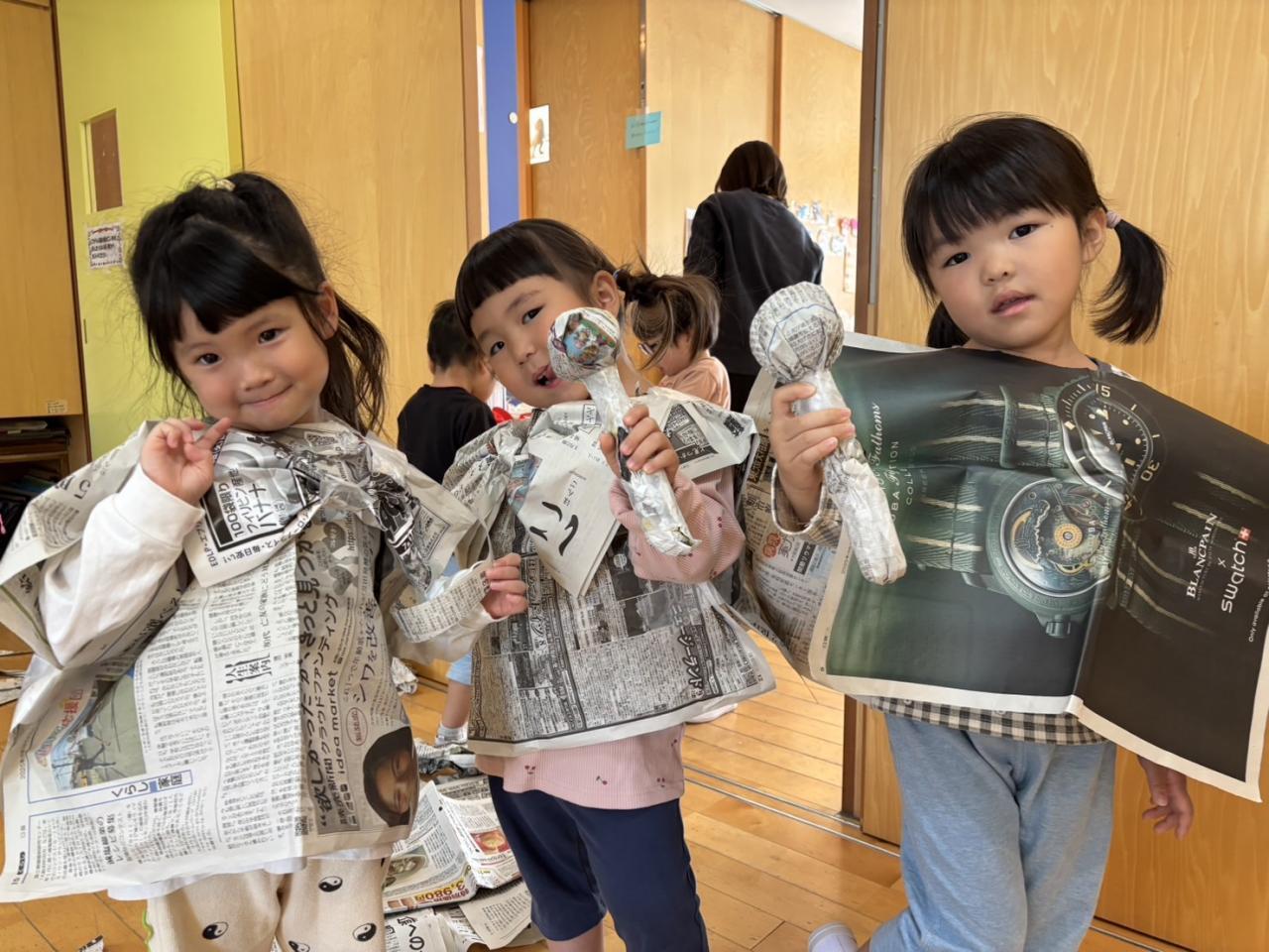 発想力豊かな子どもたち!様々な物を新聞紙で作っていました😆